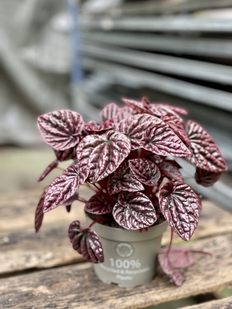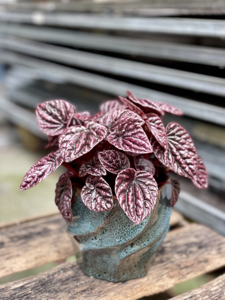 Wyraziście bordowa peperomia; intrygujący kontrast wizualny dla klasycznych, zielonych roślin z Twojej kolekcji. Sercowate liście są osadzone na bordowych ogonkach i pięknie opalizują od koloru czerwono-fioletowego nawet po prawie czarny. Peperomia caperata Schumi Red nie jest rośliną wymagającą, więc tym bardziej warto ją mieć w swoich zbiorach. Nie zapomnij przesadzić jej do przepuszczalnego podłoża.