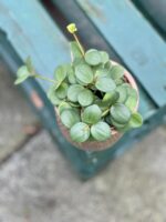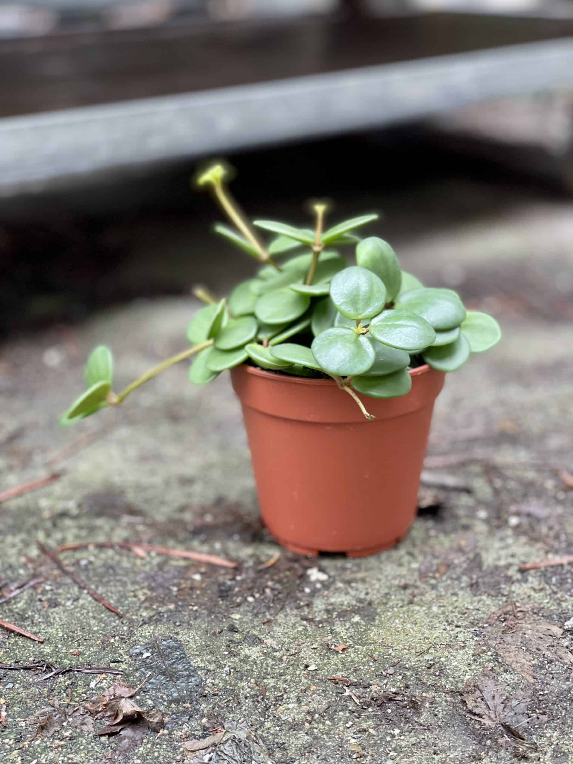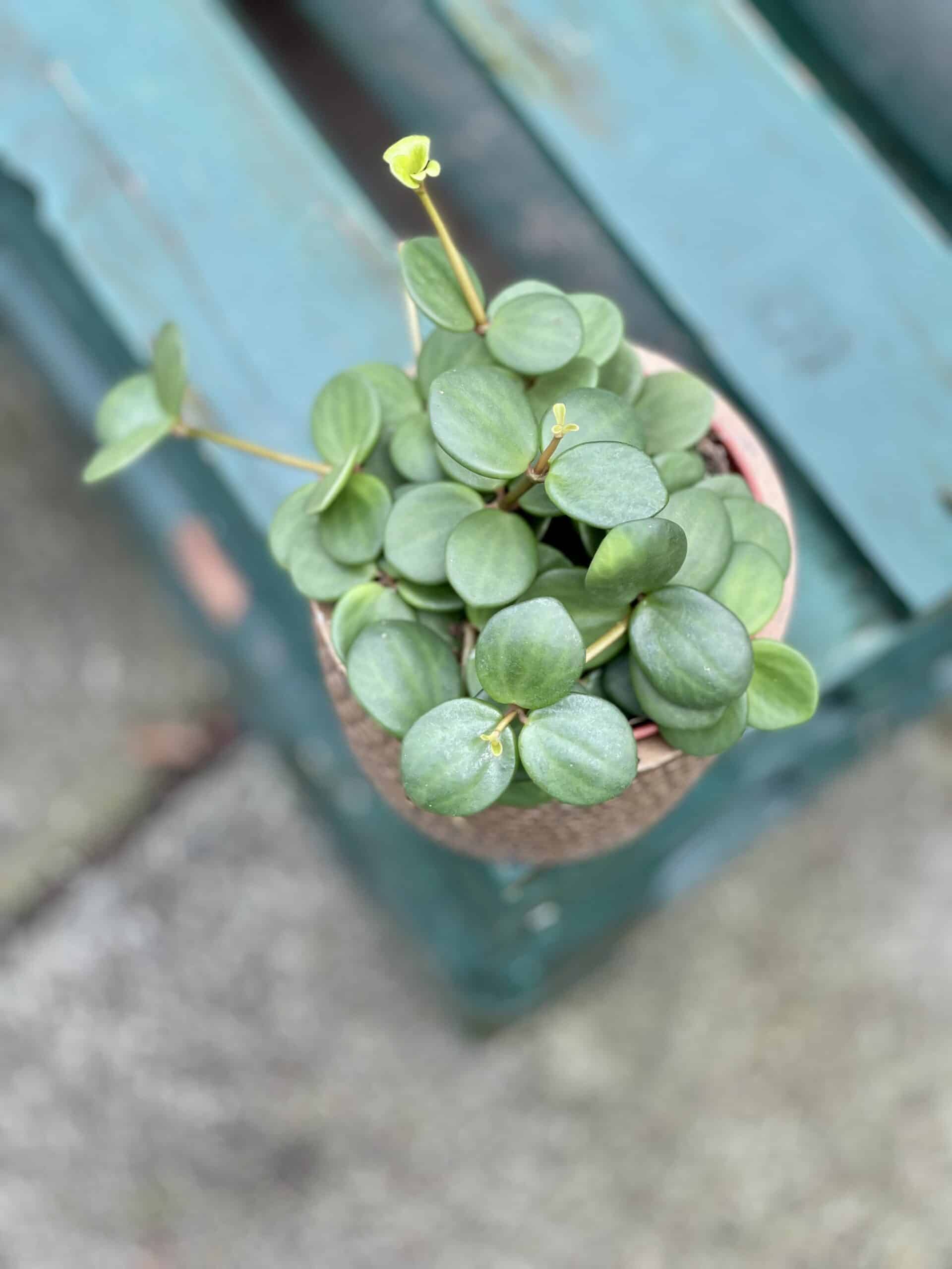 Peperomia o mięsistych, okrągłych listkach i zwisającym, efektownym pokroju. Zjawiskowo będzie prezentować się w makramie lub na górnej półce. Prosto uczynić ją szczęśliwą; duża ilość rozproszonego światła i umiar w podlewaniu to klucz do sukcesu