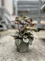 Widoczna na zdjęciu roślina: Peperomia Piccolo Banda ma wysokość około 15 cm. Jej doniczka ma 11 cm średnicy oraz 9 cm wysokości.