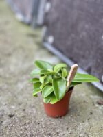 Widoczna na zdjęciu roślina: Peperomia Pixie ma wysokość około 10 cm. Jej doniczka ma 6 cm średnicy oraz 6 cm wysokości.