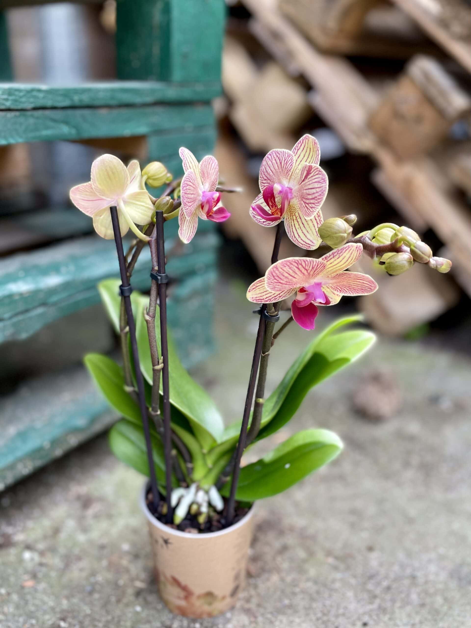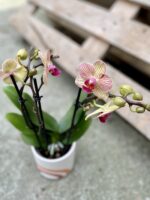 Phalaenopsis Trento to storczyk o żółto-fioletowych kwiatach, które są nieco drobniejsze niż u innych, popularniejszych odmian. Jednak kwitnie wyjątkowo chętnie, a z jego pędów można formować niezwykłe kompozycje.