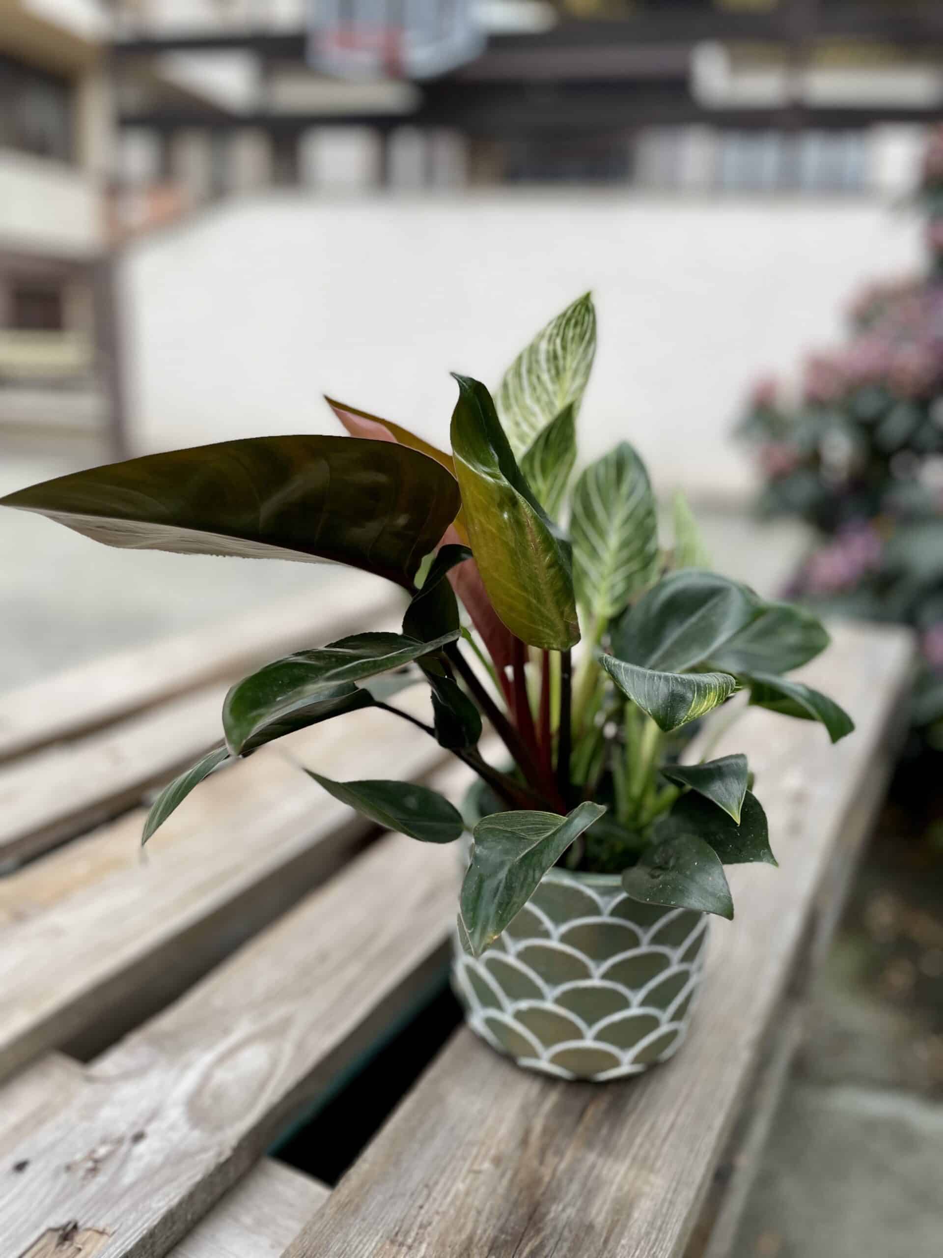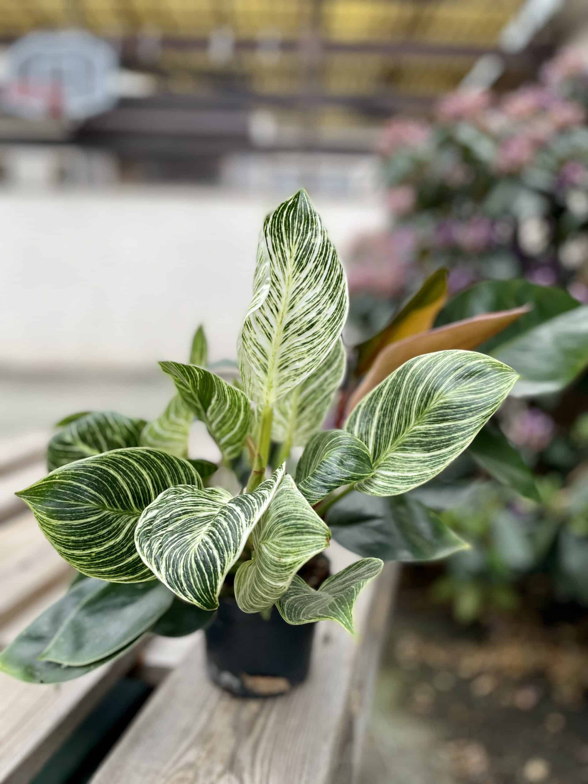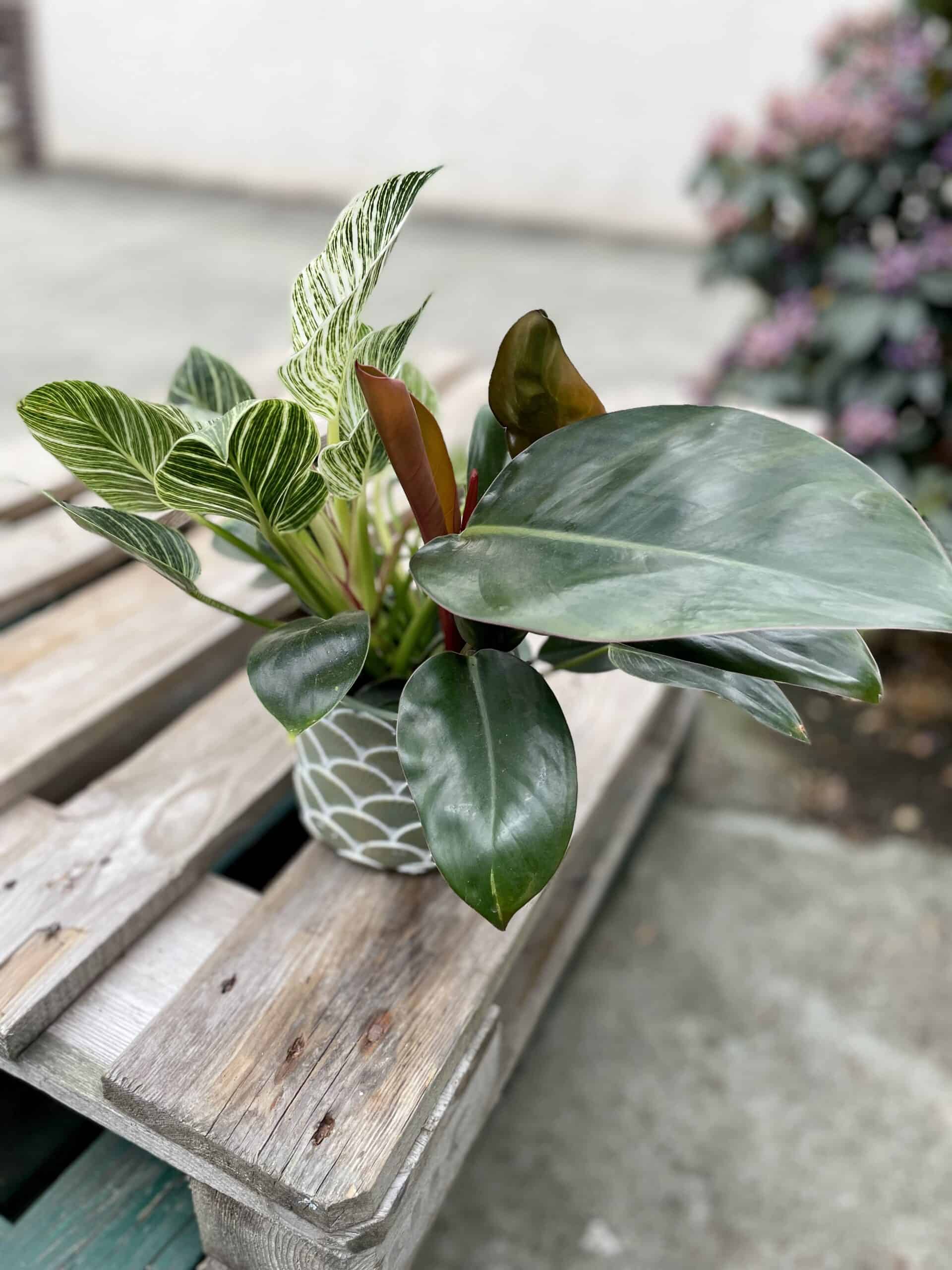 Widowiskowa hybryda czyli Philodendron Birkin w fazie regresu, wracający do formy Rojo Congo. W jednej roślinie spotyka się niezwykły duet liści – wyraziście paskowane i te w głębokiej zieleni, podbite od spodu bordową barwą. Philodendron Birkin Congo przykuwa wzrok nietuzinkową urodą, ale jest też łaskawy jeżeli chodzi o wymagania pielęgnacyjne. Lekkie podłoże, jasne, ale oddalone od bezpośredniego słońca stanowisko i umiar w podlewaniu to klucz do sukcesu z tym pięknym okazem.