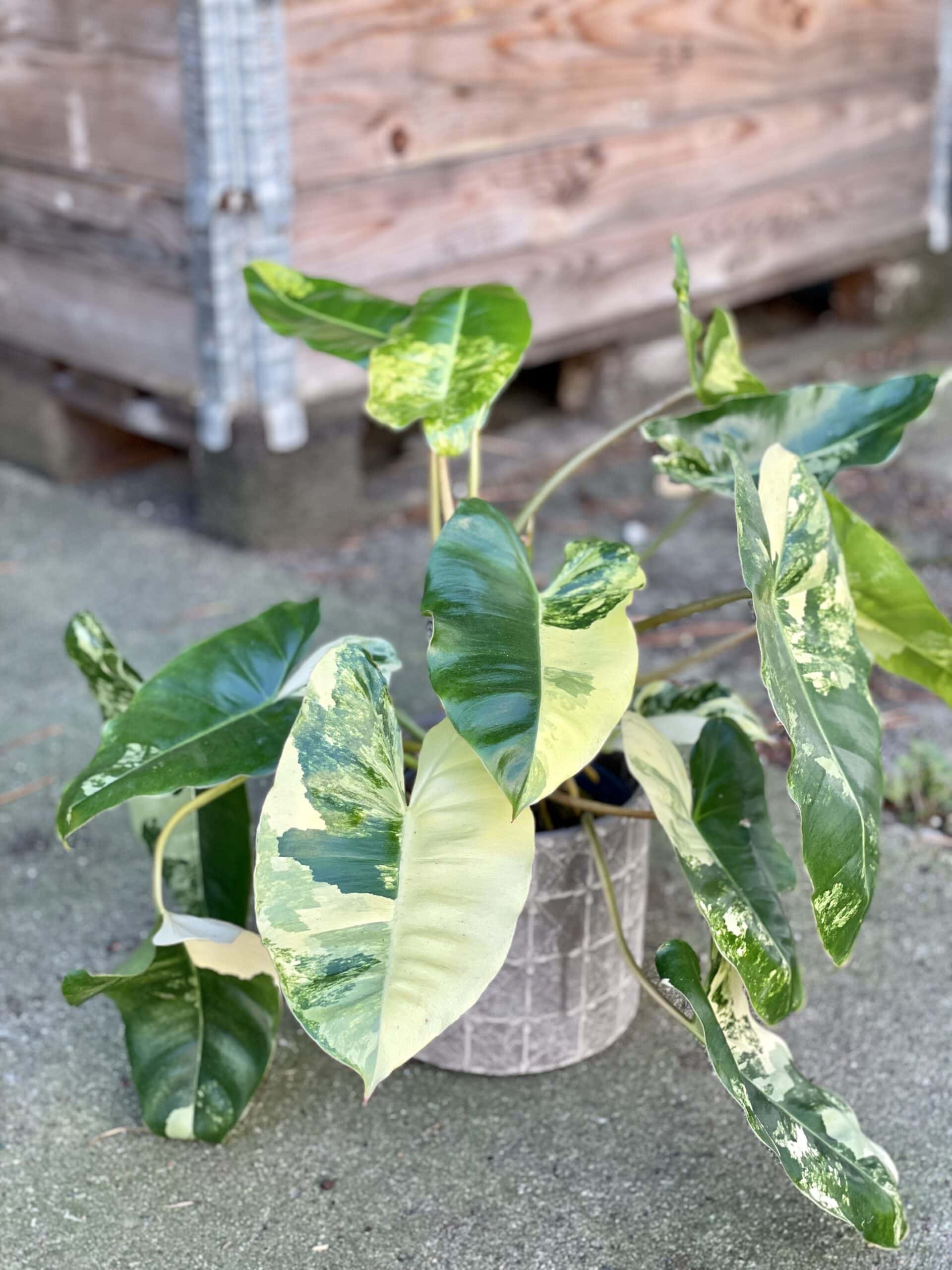 • Philodendron Burle Marx variegata to kolekcjonerska roślina doniczkowa o kremowych wariegacjach