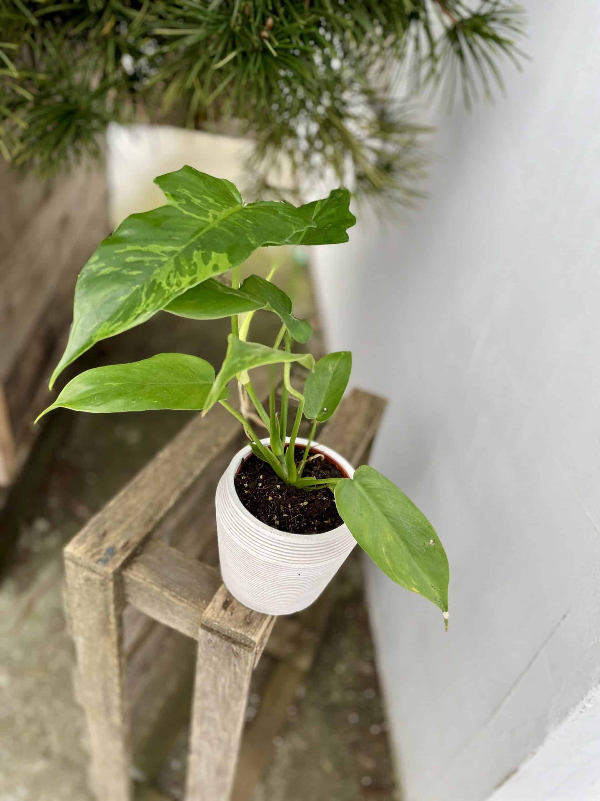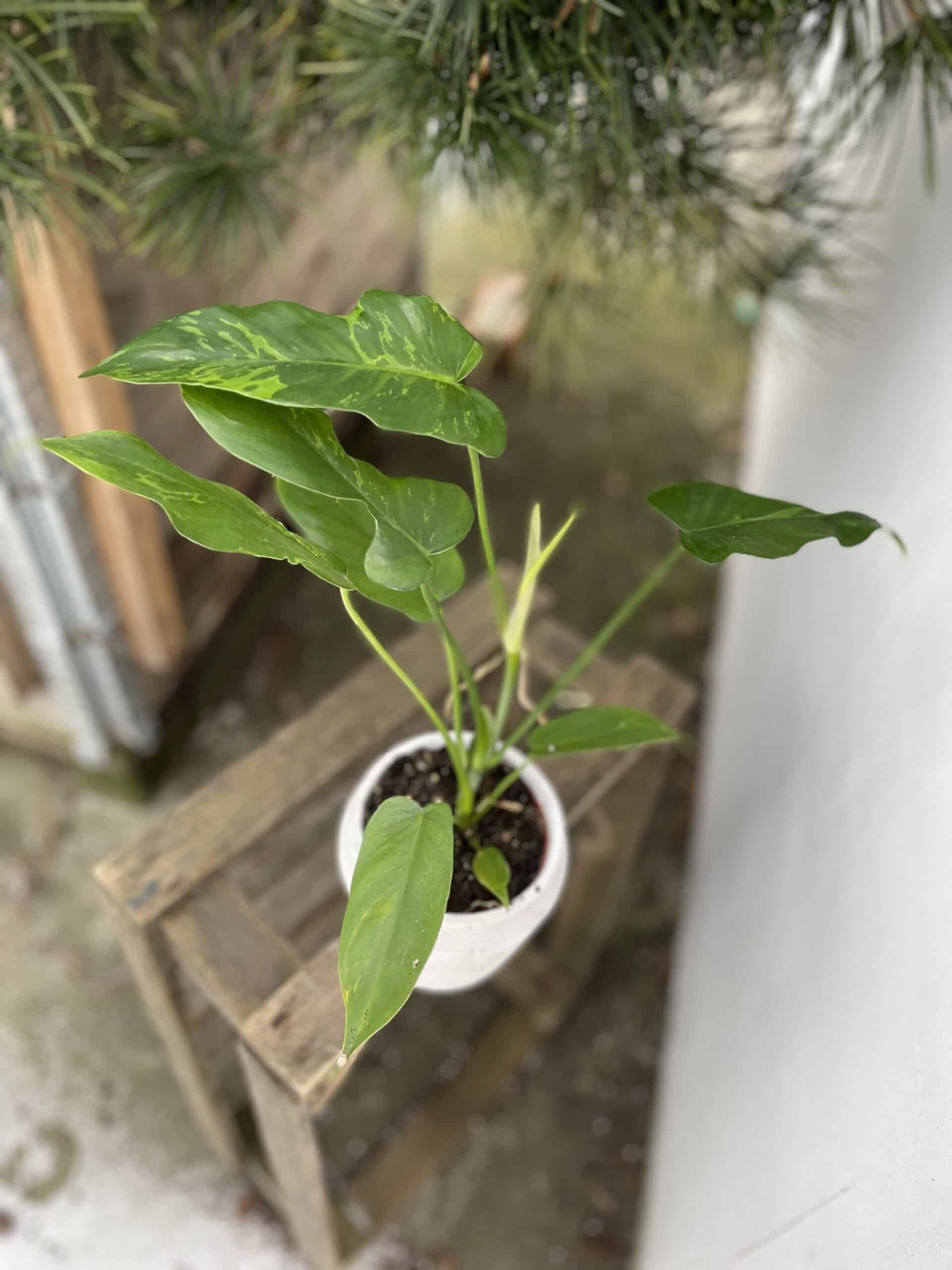 Widoczna na zdjęciu roślina: Philodendron Golden Dragon ma wysokość około 40 cm. Jej doniczka ma 10 cm średnicy oraz 8 cm wysokości.