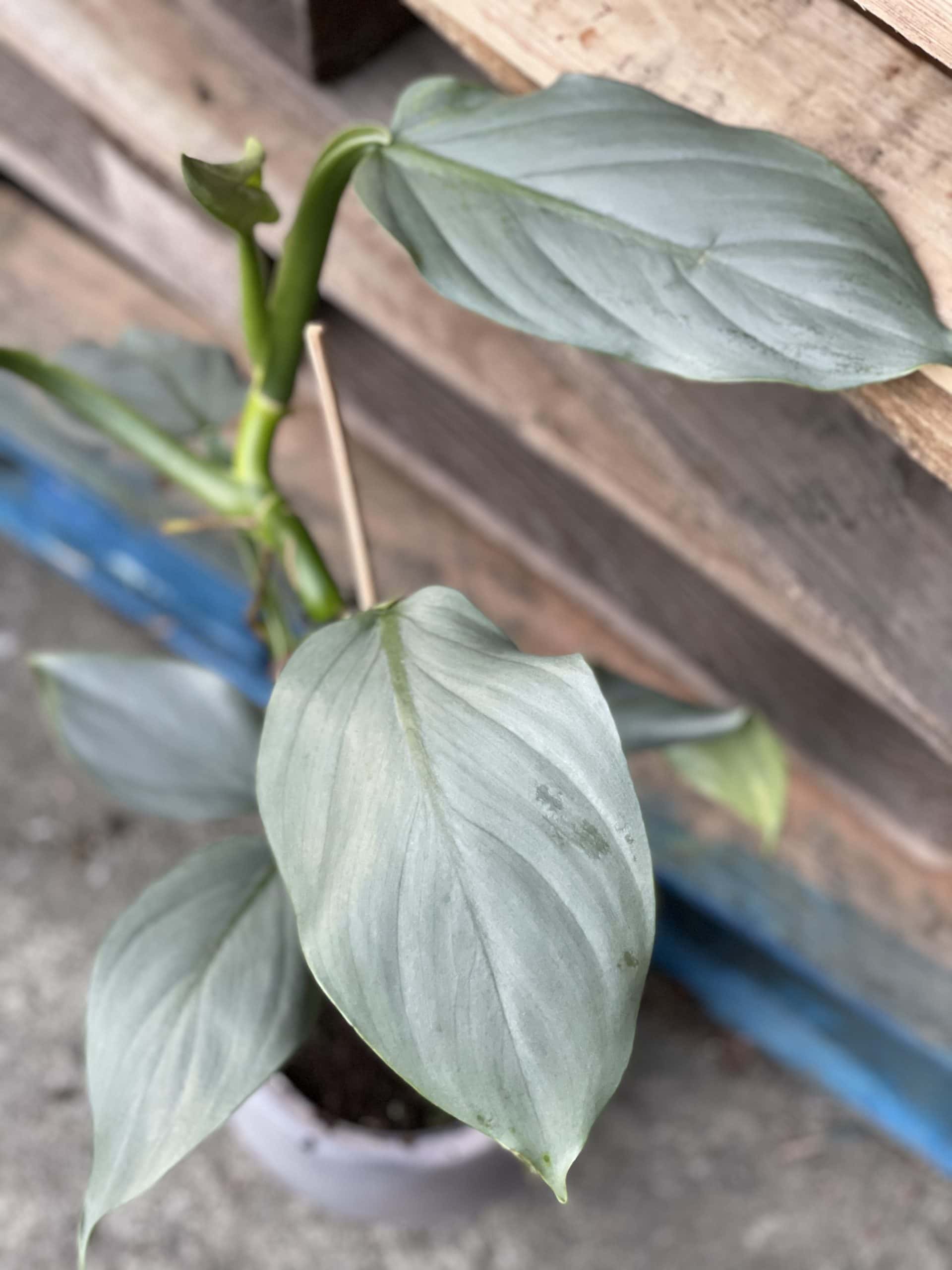 Philodendron Hastatum to wyjątkowo piękna odmiana filodendrona o srebrzyście wybarwionych połyskujących liściach. Znana również jako Philodendron Silver Queen lub Silver Sword. Rośnie bujnie nie sprawiając kłopotów pielęgnacyjnych i ładnie się rozkrzewia.