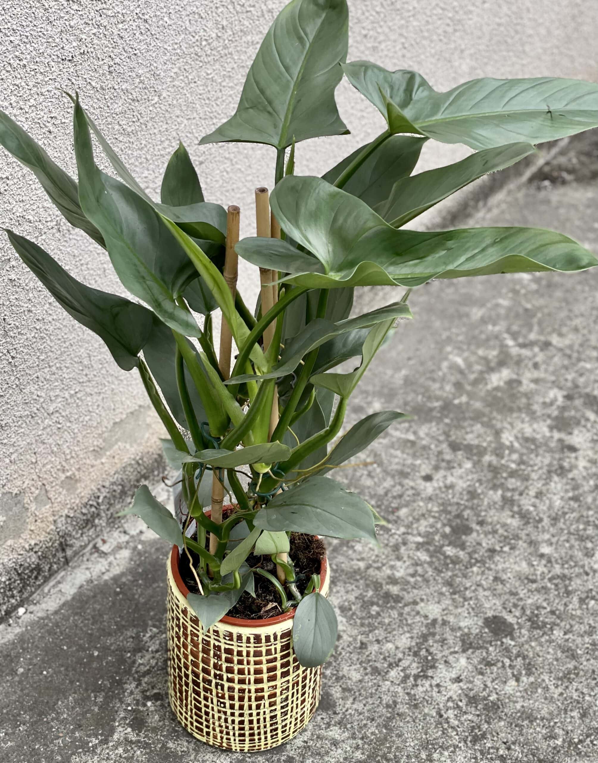 Widoczna na zdjęciu roślina: Philodendron Hastatum ma wysokość około 80 cm. Jej doniczka ma 19 cm średnicy oraz 17 cm wysokości.