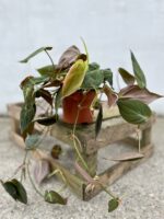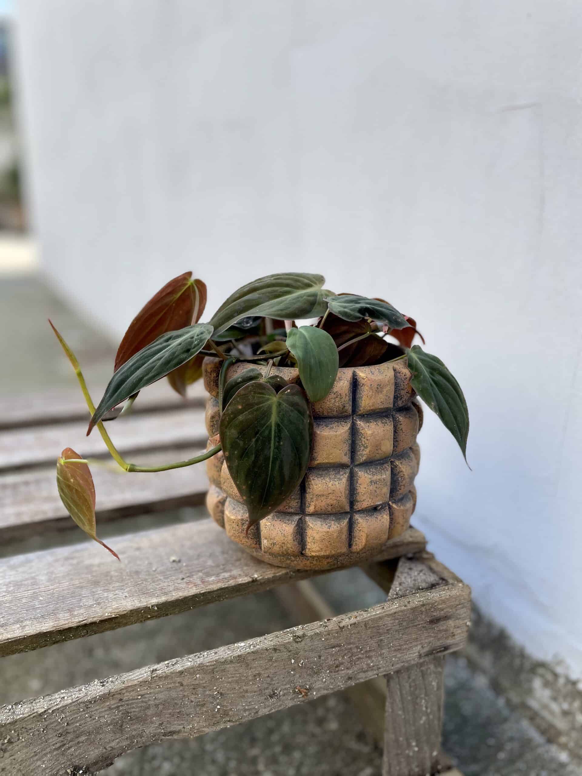 Philodendron hederaceum Micans to piękny filodendron pnący o sercowatych, aksamitnych liściach. Ciężko jednoznacznie określić ich kolor – jednocześnie wpadają w zieleń i w brąz, a kiedy są młode mają łososiowy odcień. Jedno jest jednak pewne – jest to piękny filodendron i dość łatwy w uprawie! Philodendron Micans nada się więc również jako roślina dla początkujących.