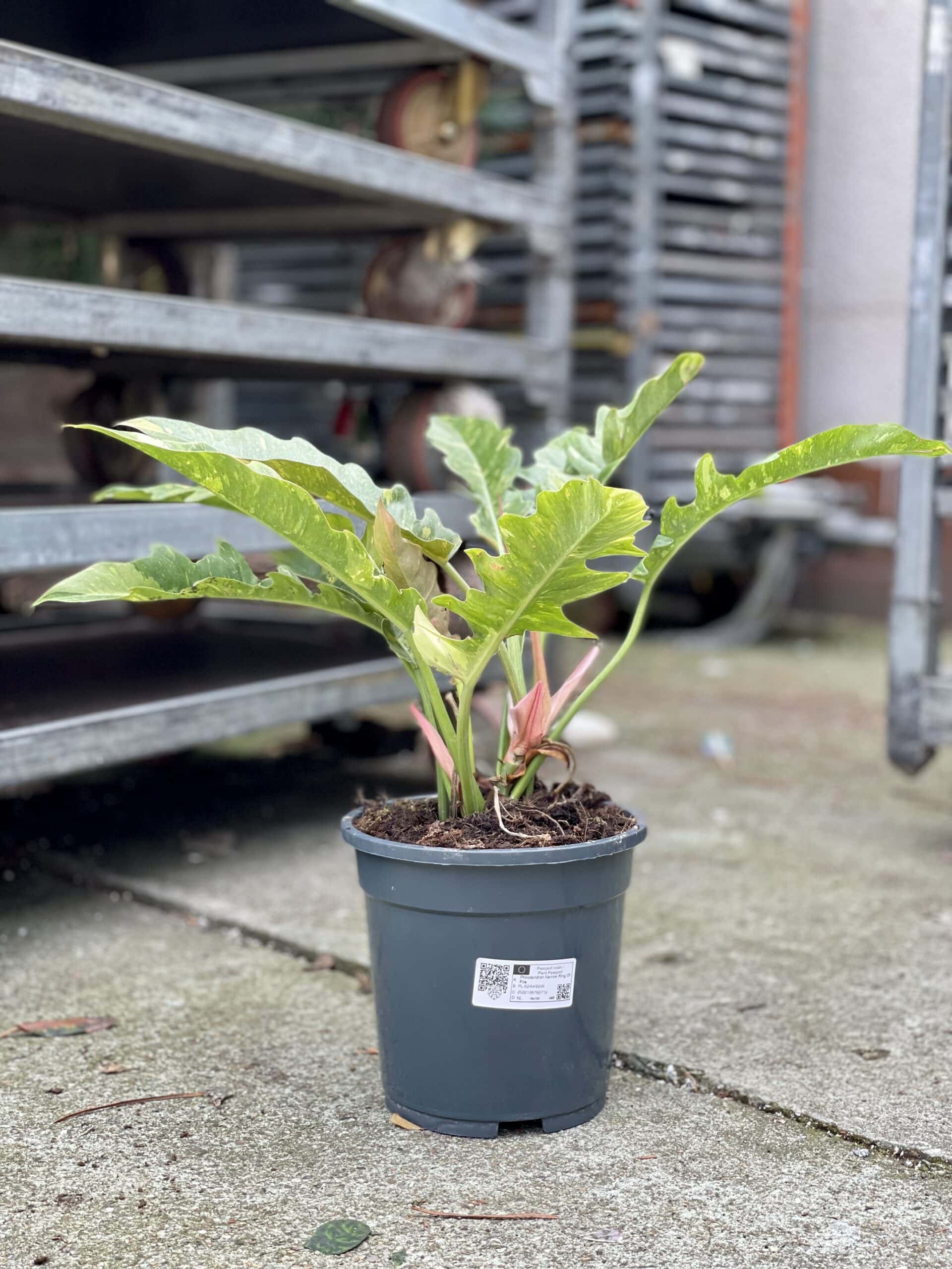 Widoczna na zdjęciu roślina: Philodendron Narrow Ring of Fire ma wysokość około 50 cm. Jej doniczka ma 19 cm średnicy oraz 18 cm wysokości.