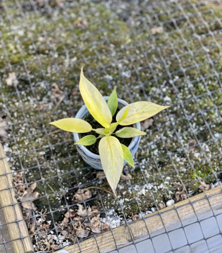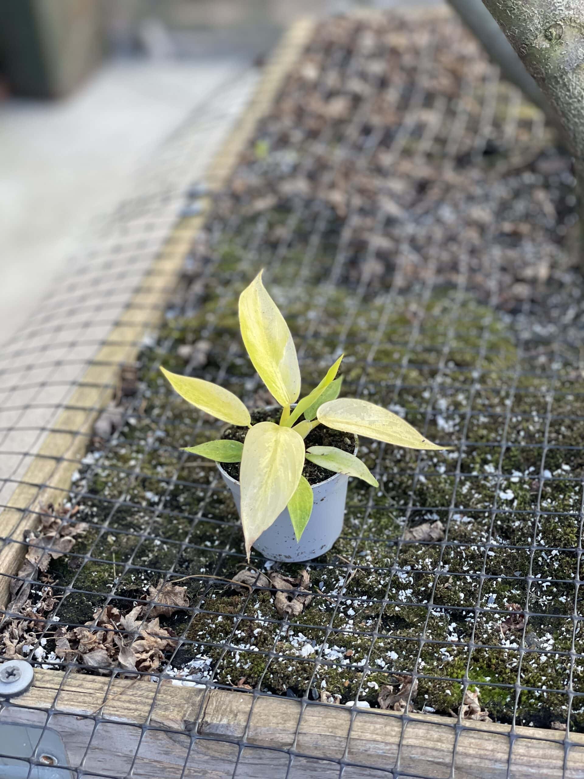 Widoczna na zdjęciu roślina: Philodendron Painted Lady ma wysokość około 5 cm. Jej doniczka ma 6 cm średnicy oraz 12 cm wysokości.