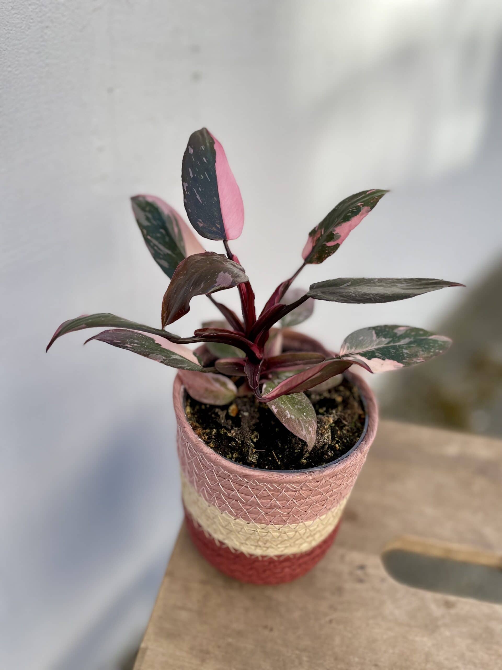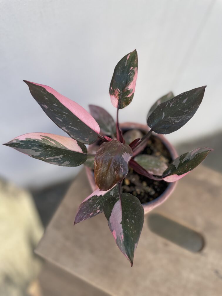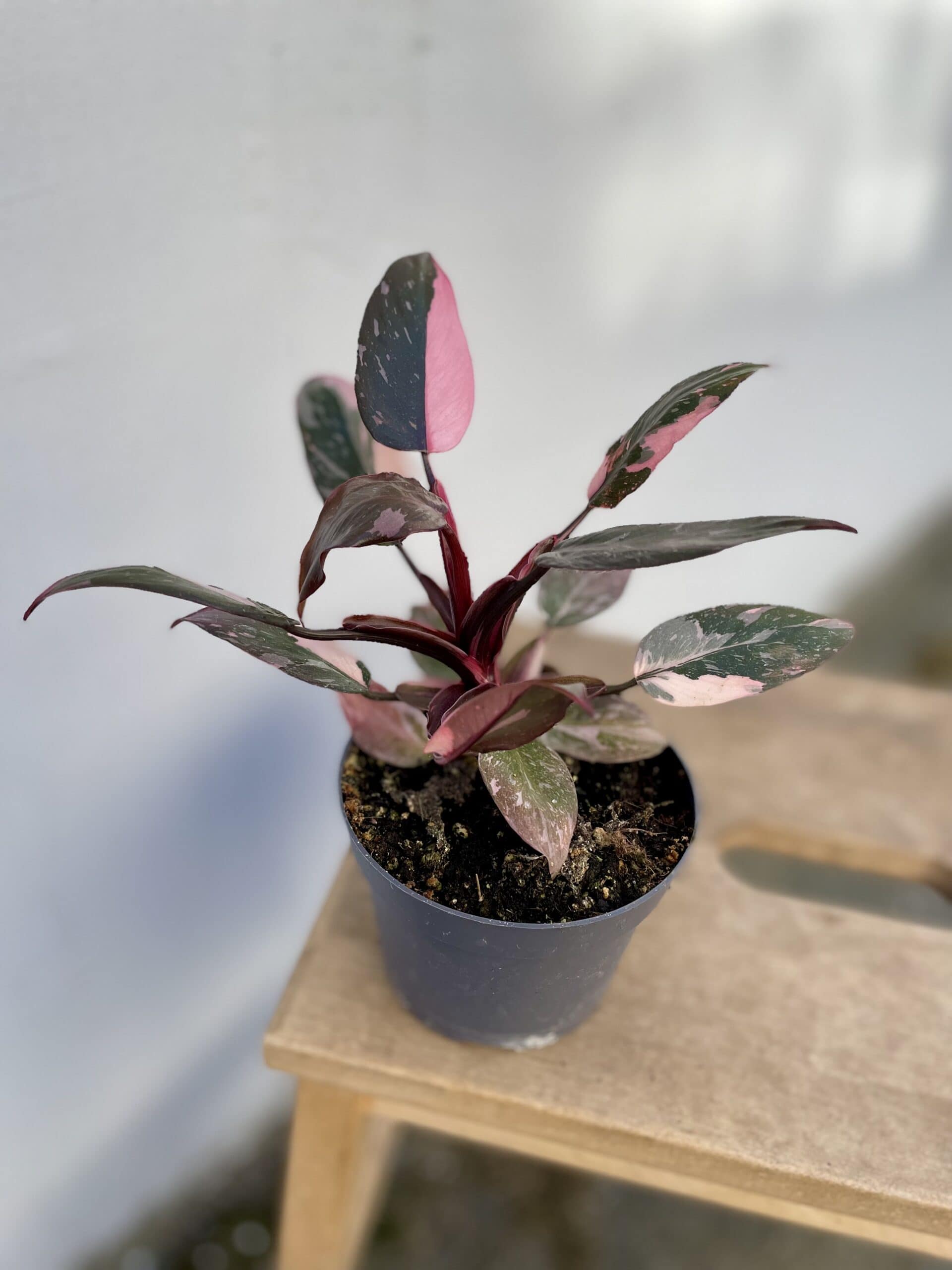 Każdy liść tego pięknego filodendrona jest niespodzianką. Intensywność różowych i kremowych przebarwień jest unikalna dla każdego liścia. Niepowtarzalność wzorów i ciekawa kolorystyka, idą w parze z prostotą uprawy tej różowej księżniczki.