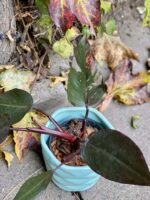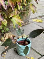 Widoczna na zdjęciu roślina: Philodendron erubescens Pink Princess ma wysokość około 30 cm. Jej doniczka ma 11 cm średnicy oraz 9 cm wysokości.