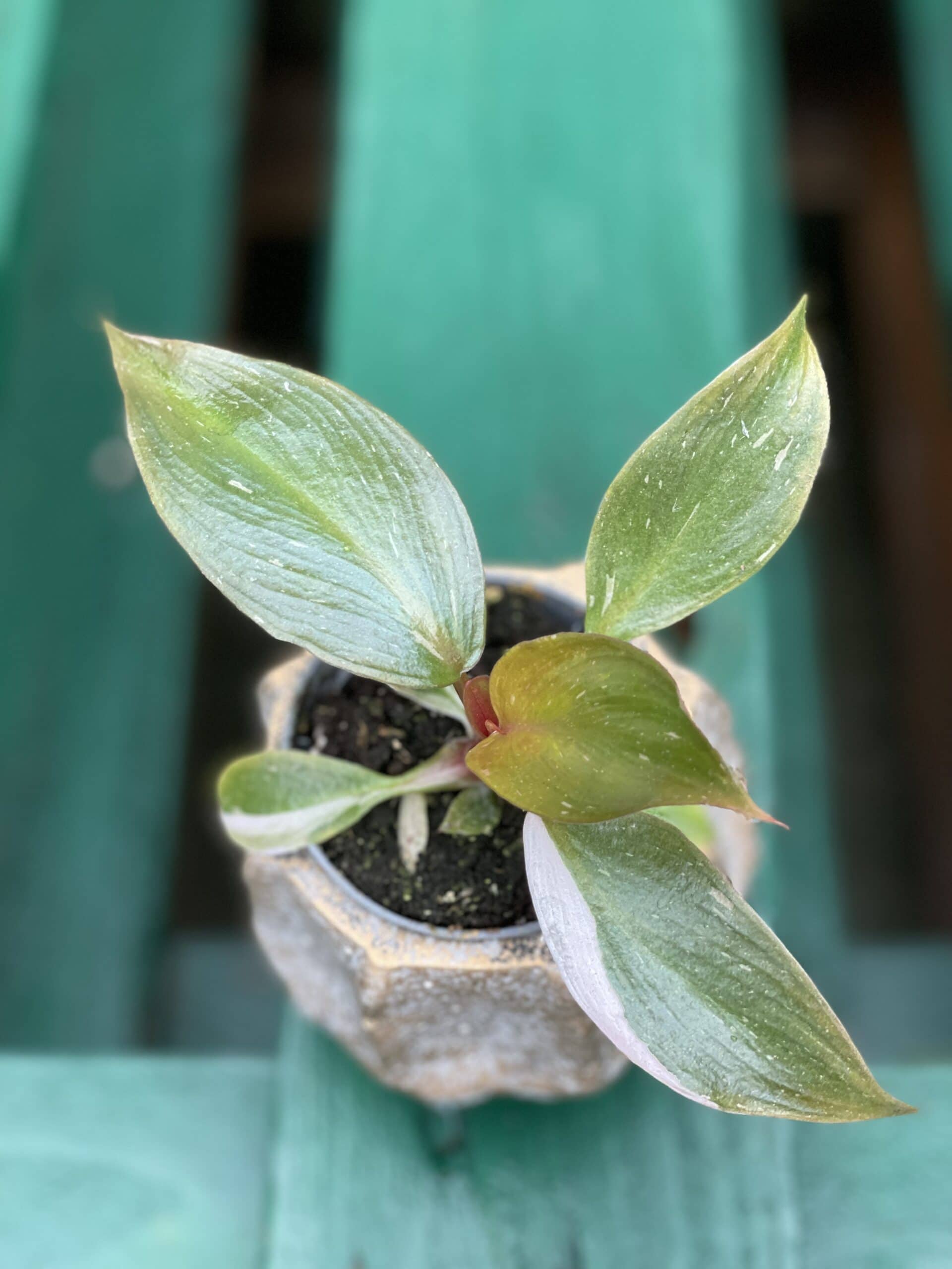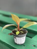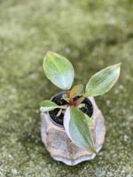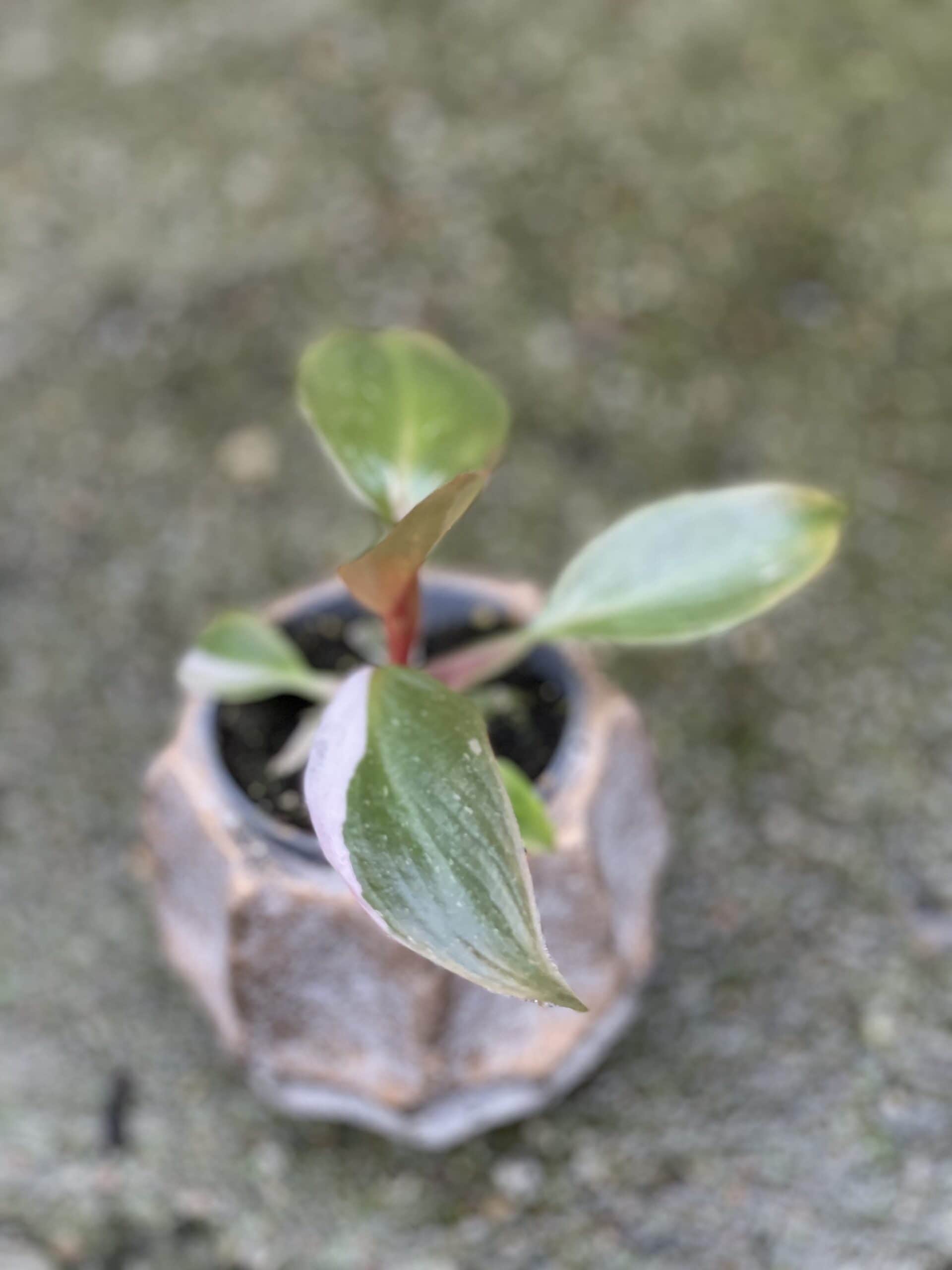 Widoczna na zdjęciu roślina: Philodendron erubescens Pink Princess ma wysokość około 10 cm. Jej doniczka ma 6 cm średnicy oraz 5 cm wysokości.
