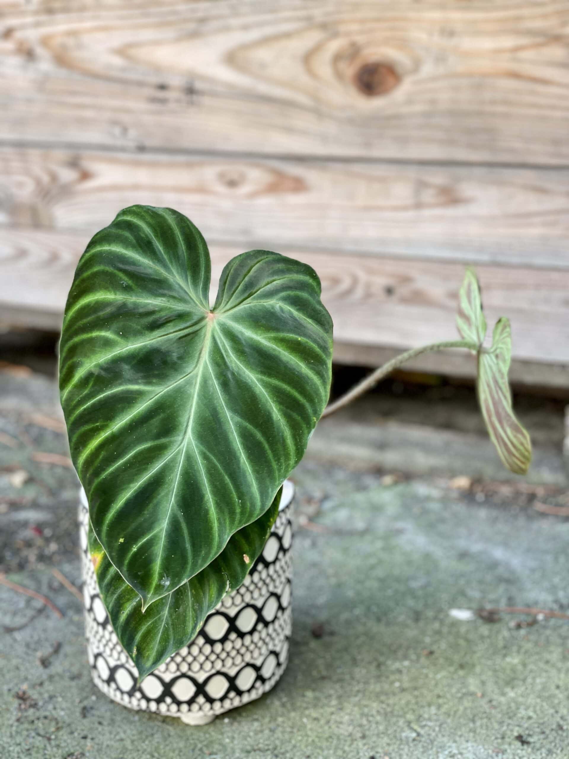 Philodendron Verrucosum, o wdzięcznej polskiej nazwie Filodendron Brodawkowaty, to wyjątkowy przedstawiciel filodendronów. Ceniony i lubiany ze względu na bardzo ładne ubarwienie – ciemniejsza zieleń z jaśniejszym unerwieniem wyglądają jak fluoroscencyjne światło. Dodatkowo jego liście są welwetowe, z delikatnym meszkiem, przez co są bardzo przyjemne w dotyku, a całości dopełniają bordowe spody. Liściom towarzyszą równie ciekawe łodygi – włochate i mogące przybierać czerwoną barwę. Podlewajmy go regularnie, ale pozwólmy podłożu dobrze przeschnąć między podlewaniami. Najlepiej odnajdzie się luźnej, przepuszczalnej mieszance – ziemi do filodendronów lub do monster. Warto zadbać również o podwyższoną wilgotność powietrza – 60% lub wyżej. Więcej o pielęgnacji Filodendrona Verrucosum przeczytasz na naszym blogu w tym poście.