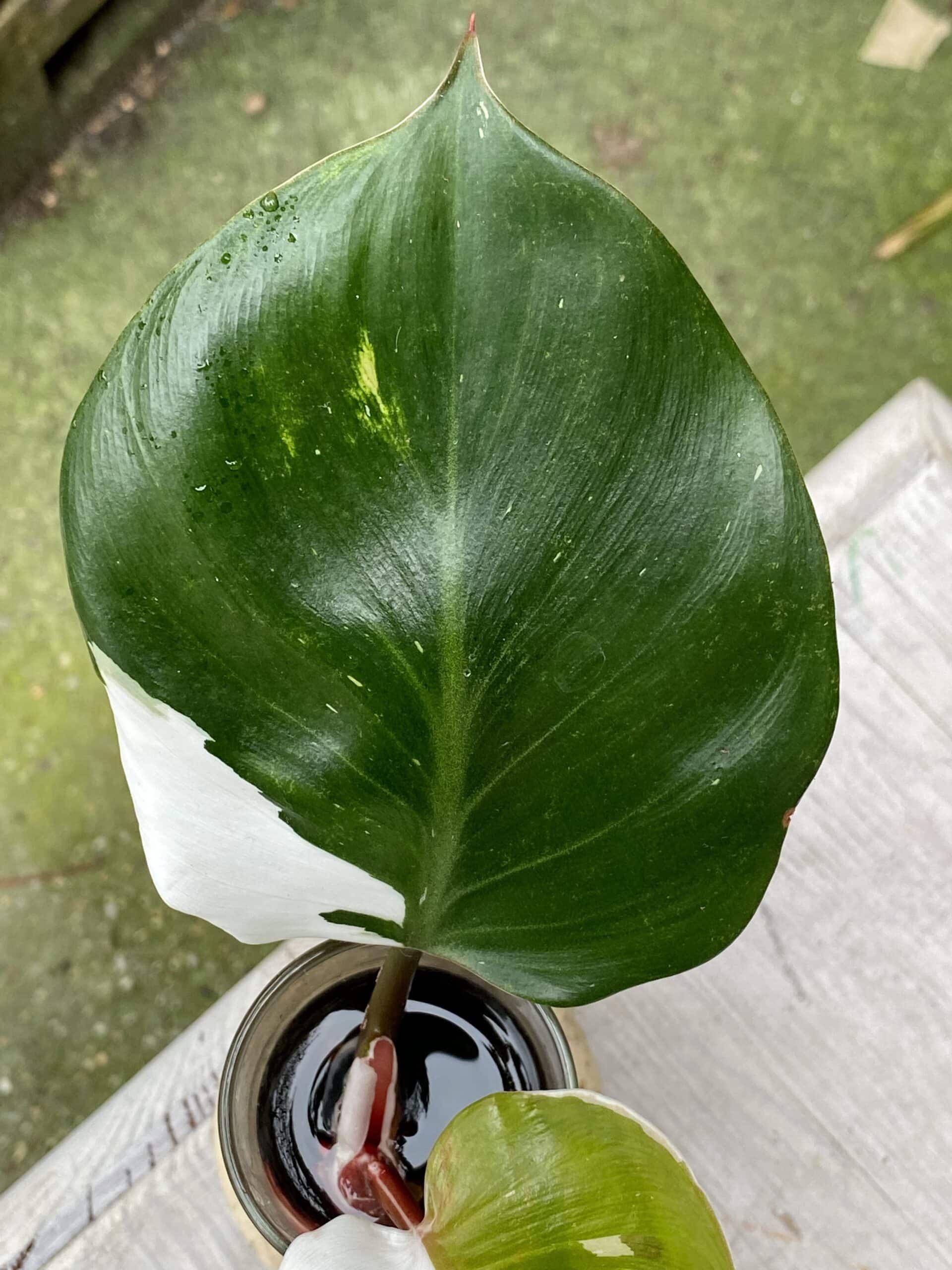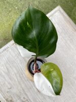 Biały rycerz; kolekcjonerska odmiana philodendrona o jasnych, eleganckich wariegacjach.