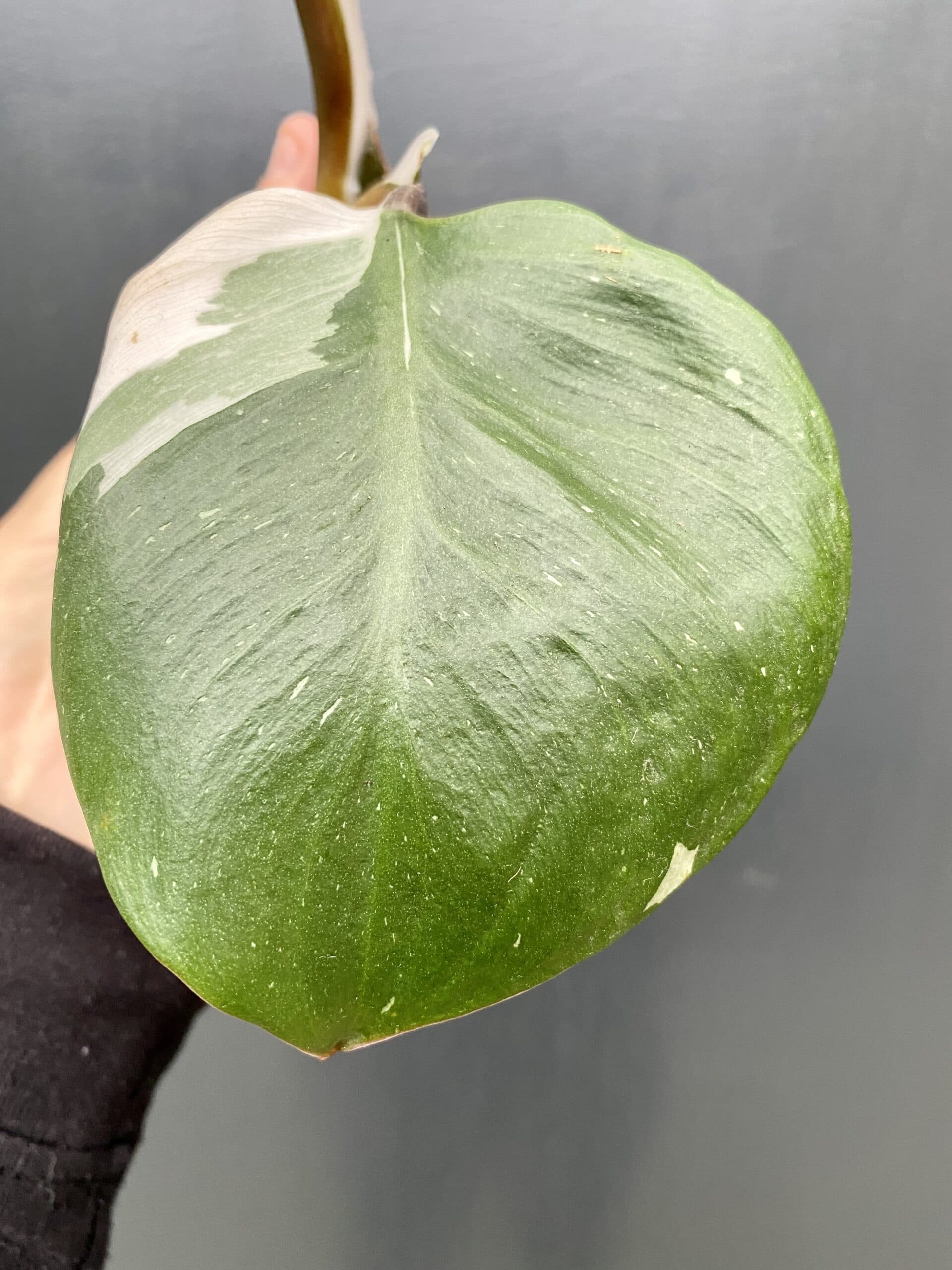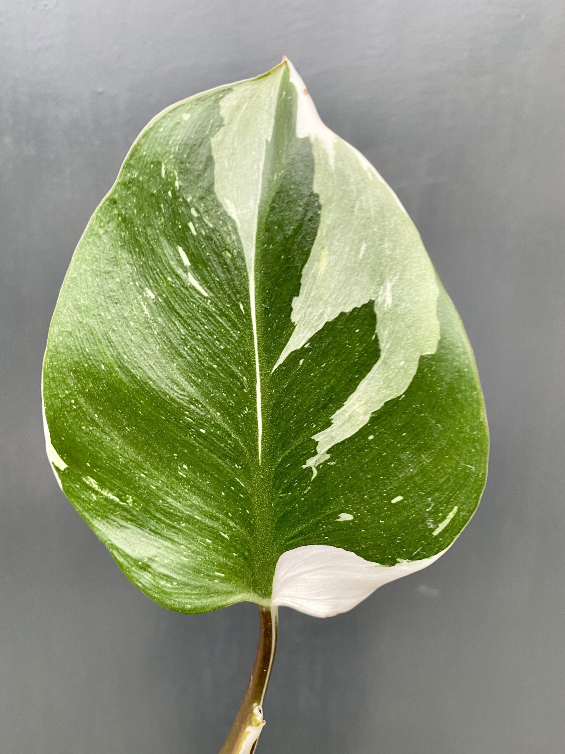 Biały rycerz; kolekcjonerska odmiana philodendrona o jasnych, eleganckich wariegacjach.