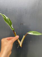 Widoczna na zdjęciu roślina: Philodendron White Knight ma wysokość około 10 cm. Jej doniczka ma 1 cm średnicy oraz 1 cm wysokości.