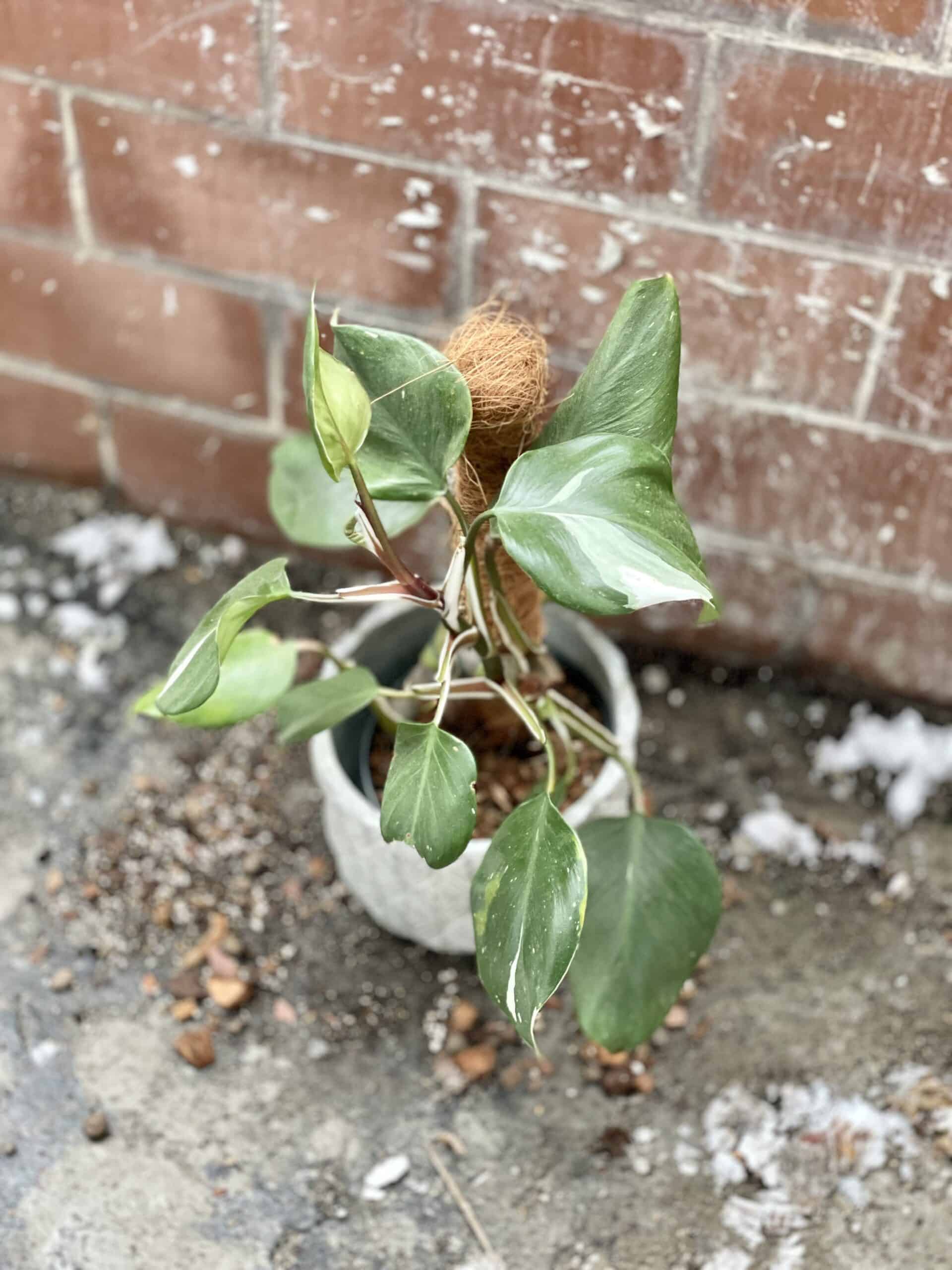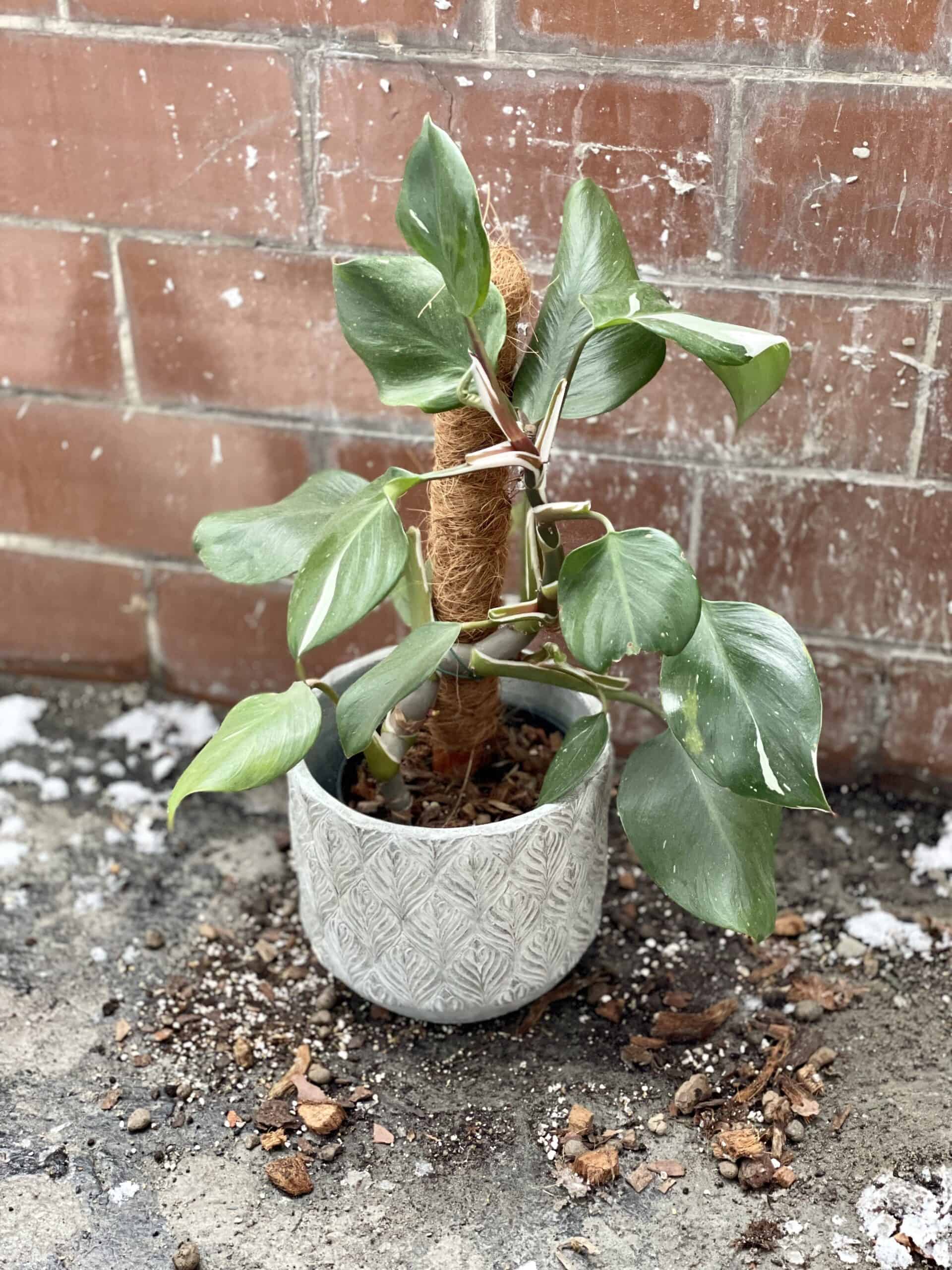 Widoczna na zdjęciu roślina: Philodendron White Knight III ma wysokość około 50 cm. Jej doniczka ma 15 cm średnicy oraz 13 cm wysokości.