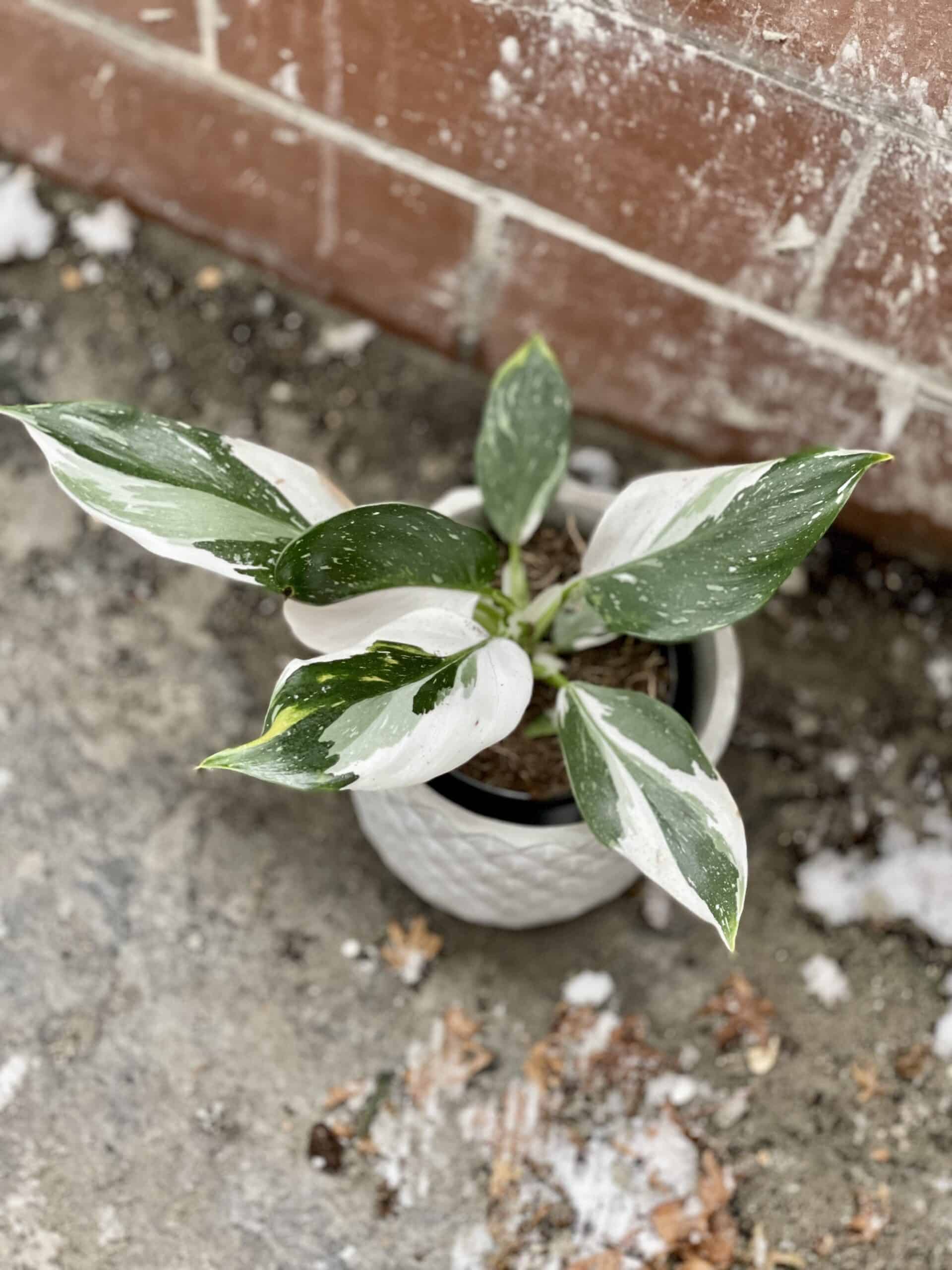 Philodendron White Wizard to kolekcjonerska odmiana filodendrona o zielono-białych łodygach i śnieżnobiałej wariegacji. Idealnie skomponuje się z odmianami White Princess i White Knight!