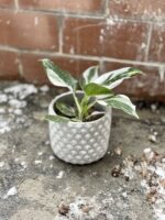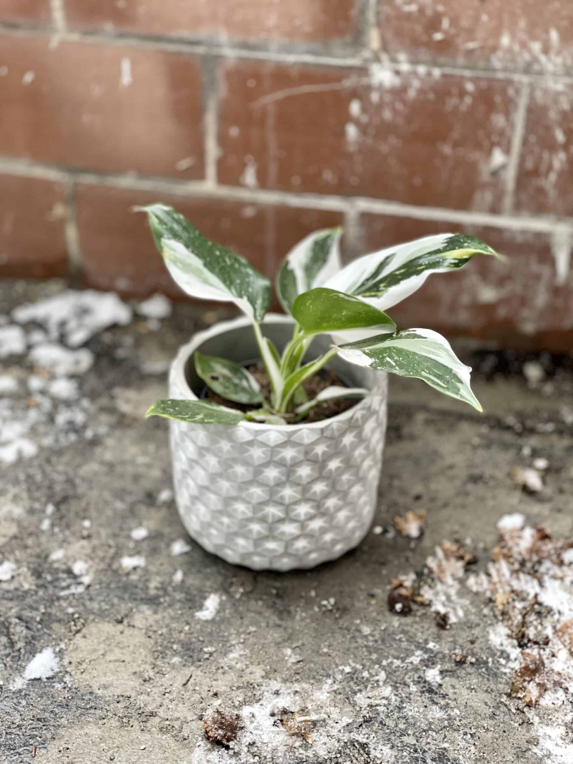 Widoczna na zdjęciu roślina: Philodendron White Wizard ma wysokość około 30 cm. Jej doniczka ma 11 cm średnicy oraz 10 cm wysokości.