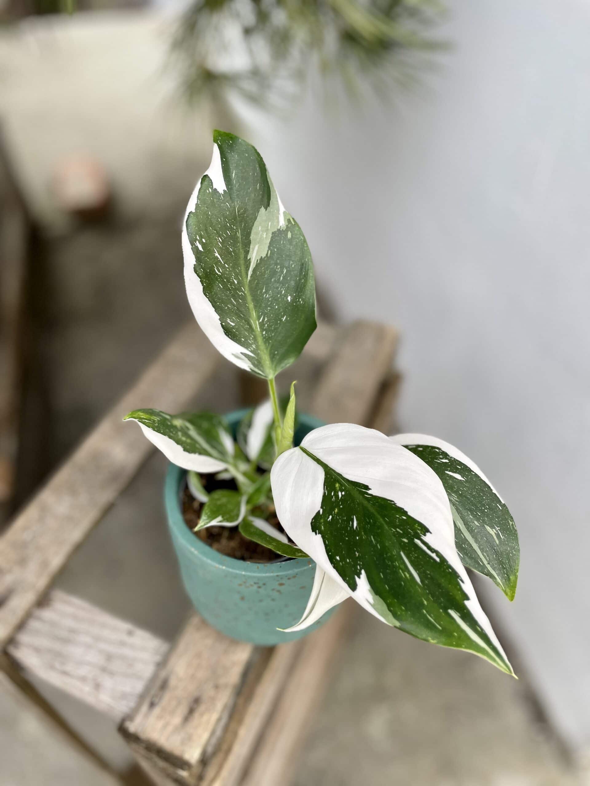 Philodendron White Wizard to kolekcjonerska odmiana filodendrona o zielono-białych łodygach i śnieżnobiałej wariegacji. Idealnie skomponuje się z odmianami White Princess i White Knight!