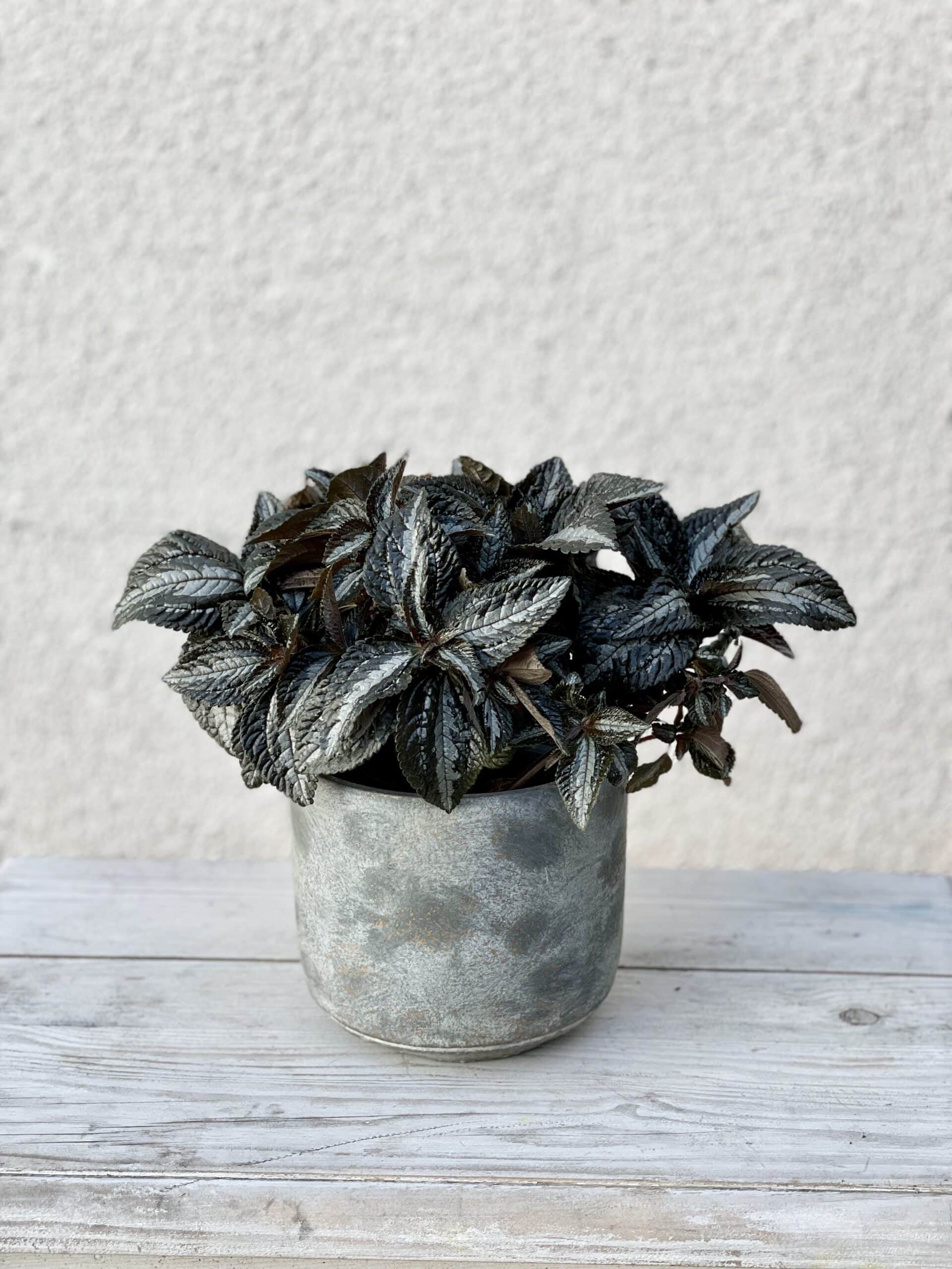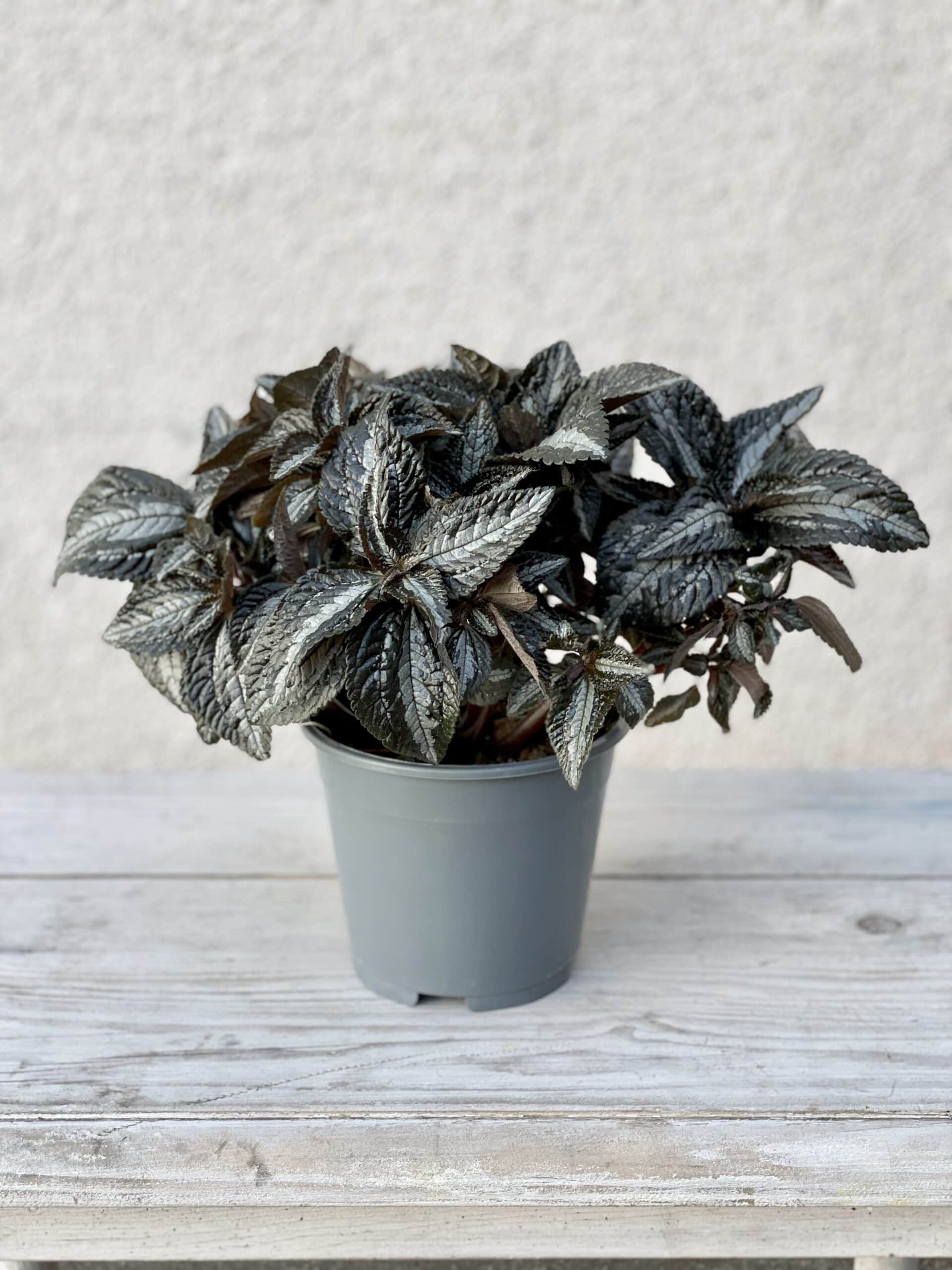 Widoczna na zdjęciu roślina: Pilea Norfolk ma wysokość około 25 cm. Jej doniczka ma 14 cm średnicy oraz 12 cm wysokości.