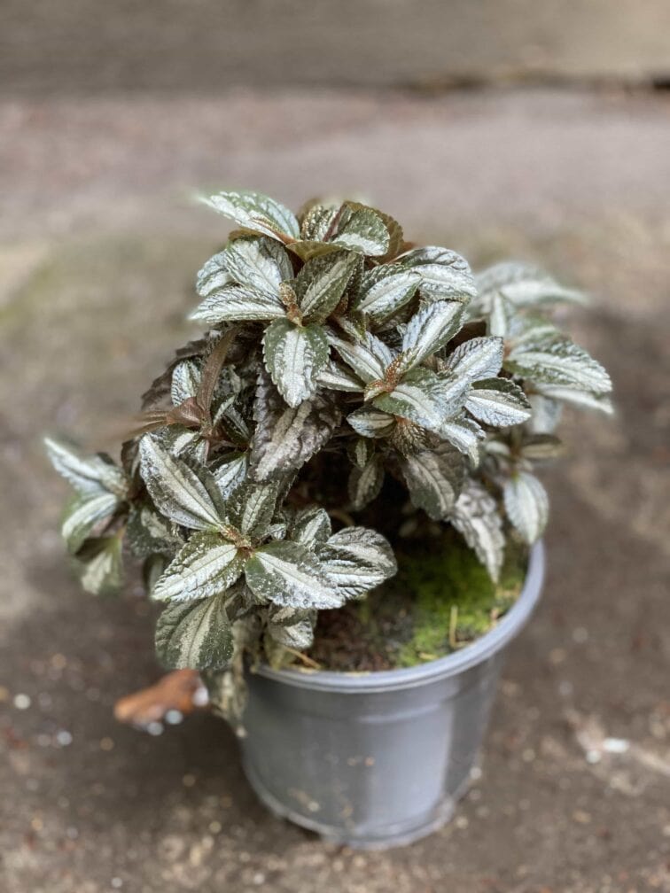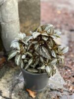 Wąskie, ząbkowane liście ozdabia szeroki, srebrny pas biegnący wzdłuż nerwu głównego. Jest bardzo wilgociolubna, co sprawia że w wersji mini chętnie wykorzystuje się ją do terrariów i lasów w słoju. Wiosną warto ją przycinać dla utrzymania ładnego, zwartego pokroju.