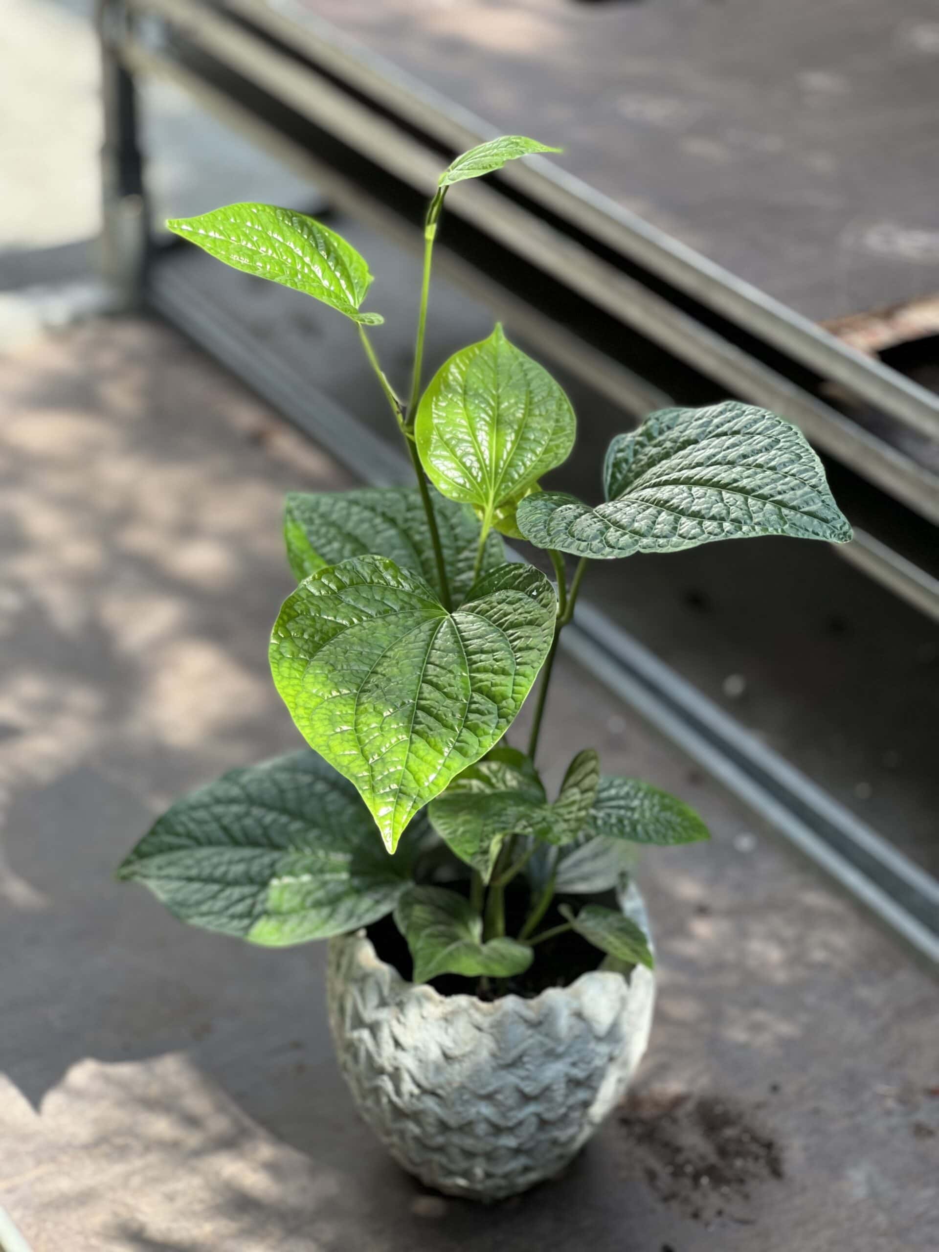 Piper sarmentosum to gatunek pieprzu o bogato żłobionych, sercowatych liściach. To roślina pnąca idealna dla poszukiwaczy rzadko spotykanych roślin doniczkowych. Pamiętajmy, że jego podłoże nie lubi całkowicie przeschnąć, a wilgotność powietrza nie powinna spadać poniżej 50%. W naturze spotkamy w go podszyciu lasów tropikalnych!