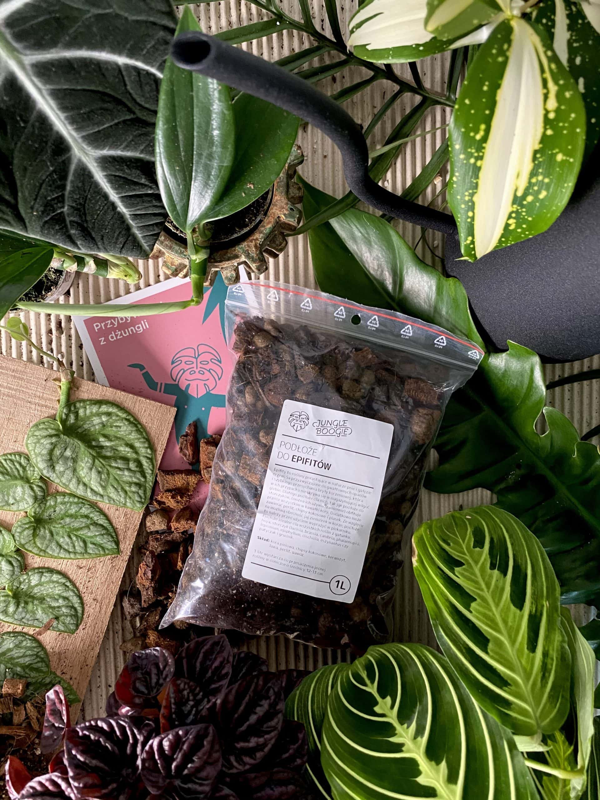 Ziemia do epifitów, która jest bardzo przepuszczalna i szybko przesychająca. Epifity to rośliny porastające w naturze pnie i gałęzie drzew. Są przyzwyczajone do gwałtownych opadów i szybkiego przesychania bryły korzeniowej, która w ich przypadku nie skrywa się w magazynującej wilgoć glebie. Dlatego podłoże dla nich, tak jak podłoże do storczyków (można ich używać zamiennie), obfituje przede wszystkim w kawałki kory. Dodatkowo może zawierać perlit, chipsy kokosowe, keramzyt i lawę.