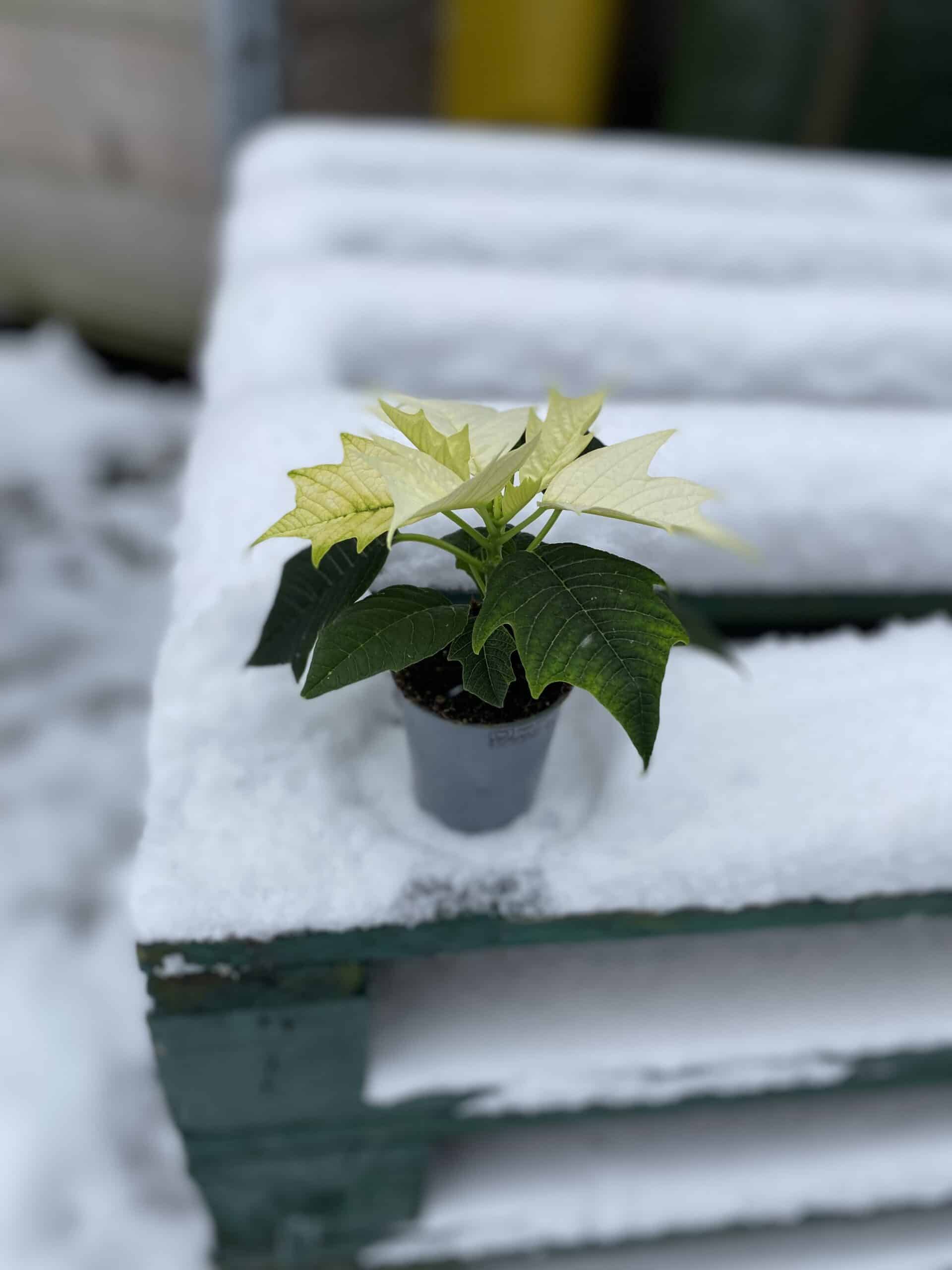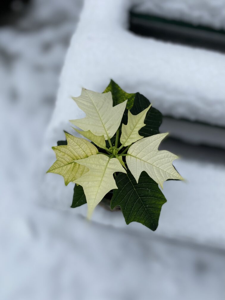 Poinsettia pulcherrima Alaska to gwiazda betlejemska dla tych, którzy szukają czegoś innego od klasycznej czerwieni. Waniliowe liście wciąż kojarzą się z zimowo-świątecznym czasem i będą pasować zarówno do złotych, jak i drewnianych dodatków!