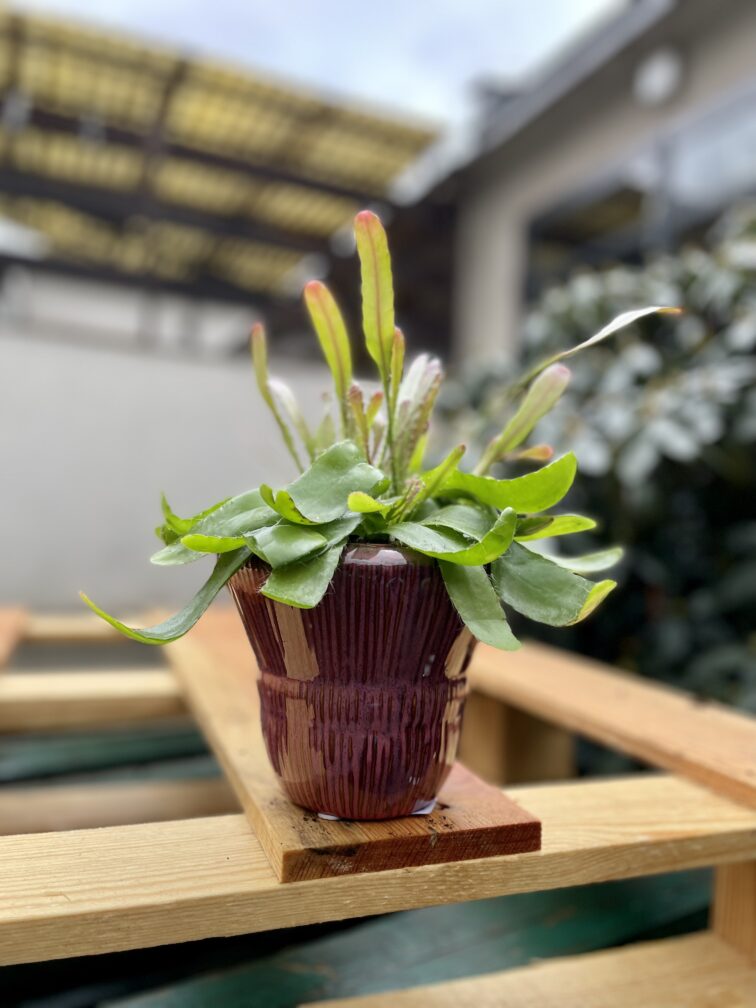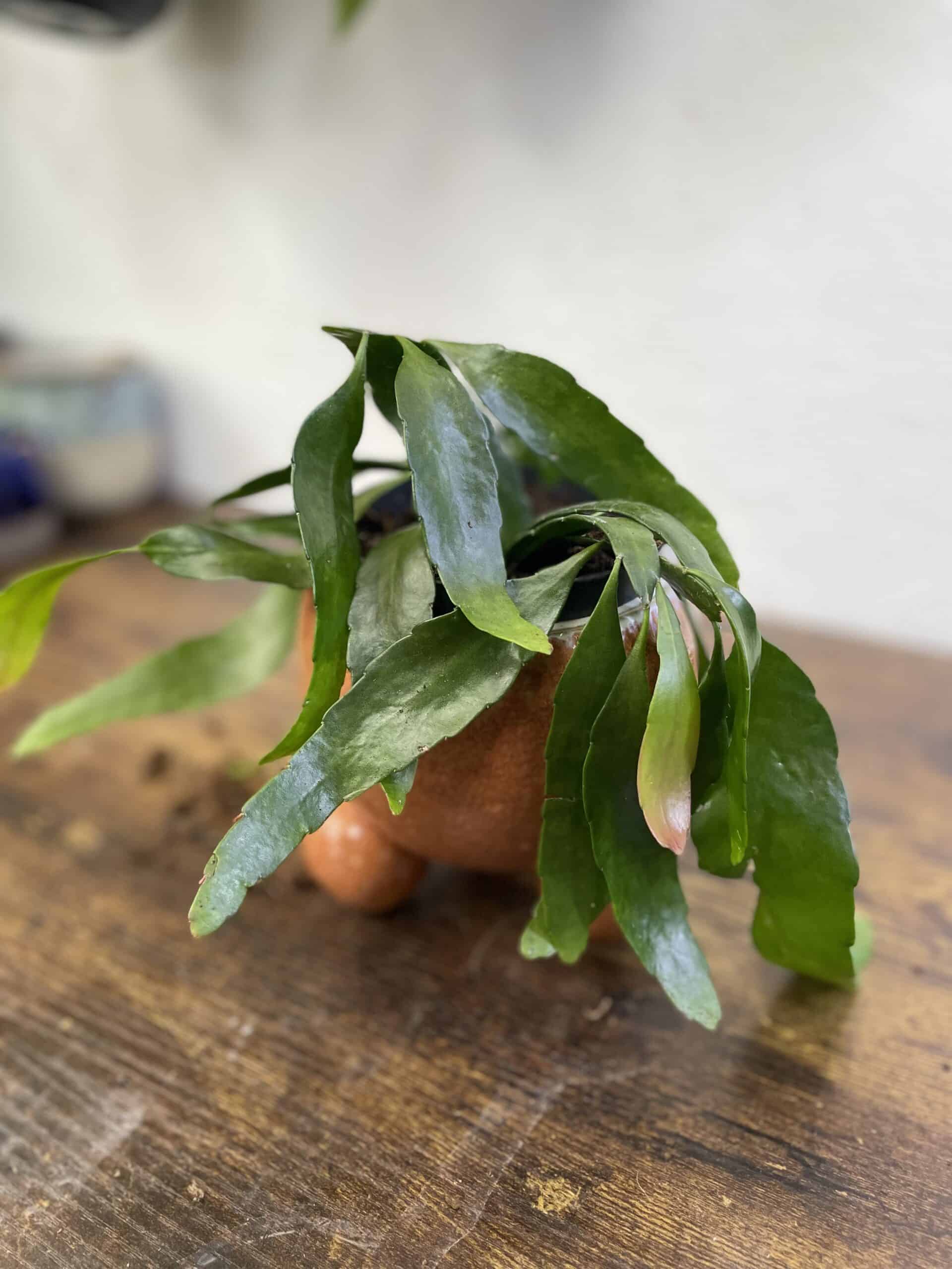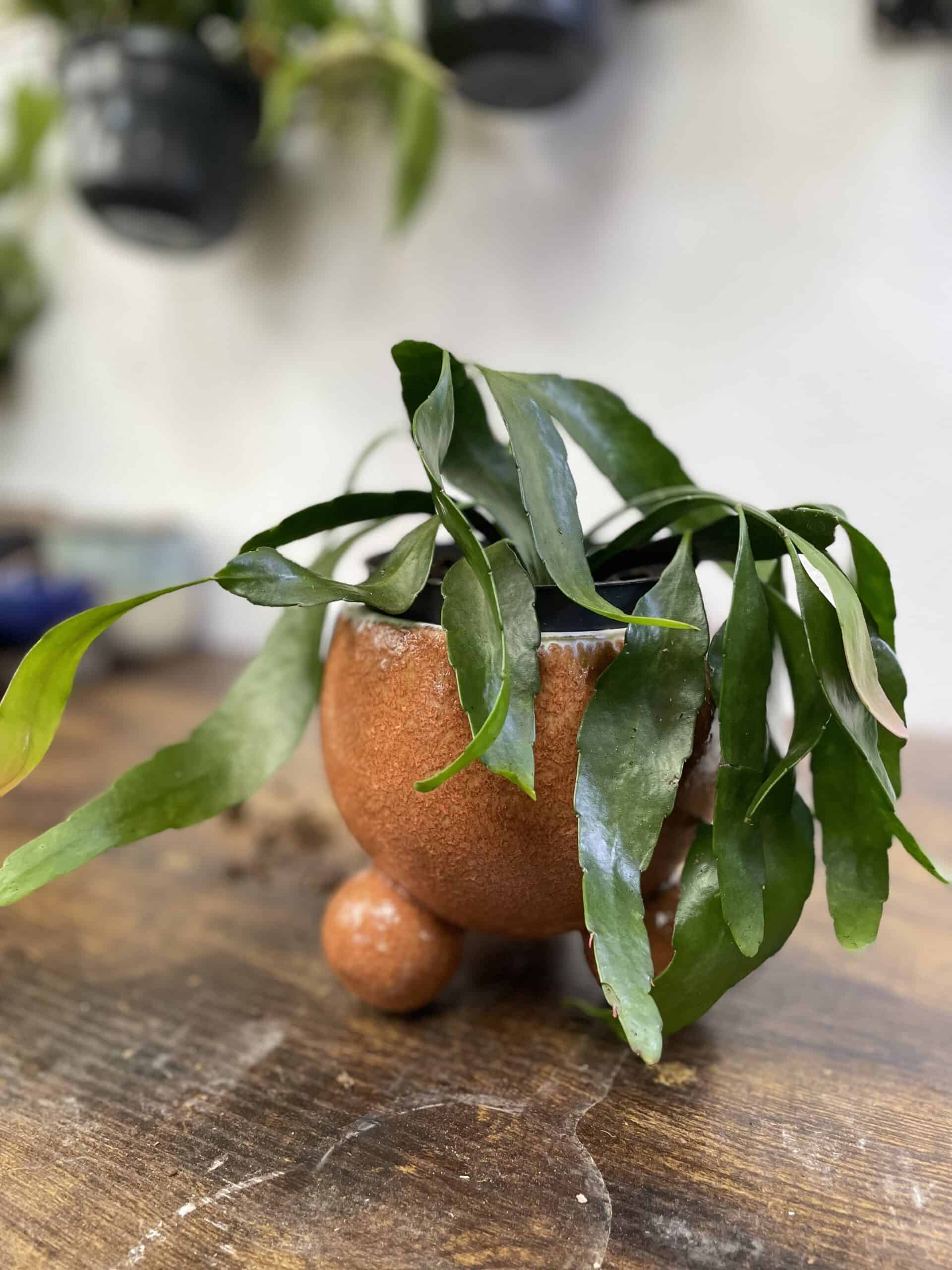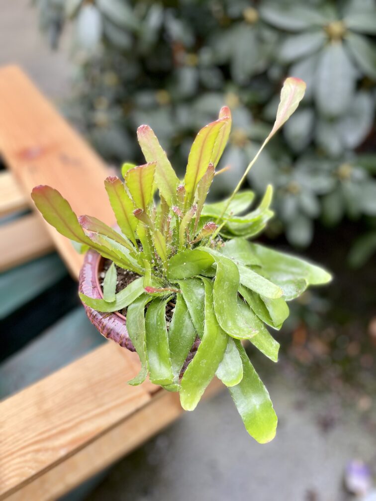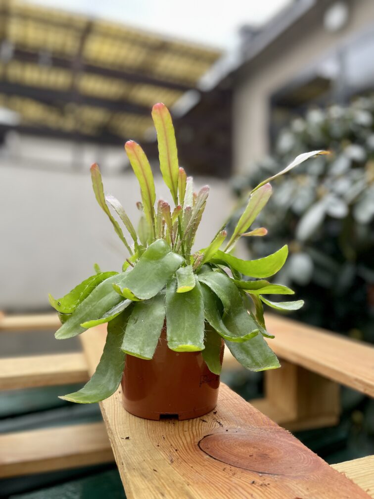 Pseudorhipsalis ramulosa Red Coral – ten barwny, unikatowy epifit zmienia kolorystykę w zależności od pory roku. Latem jego liście to gama wakacyjnych wibrujących żółci, pomarańczy i różu. Na jesień, gdy światła jest mniej, red coral przechodzi w stonowaną zieleń.