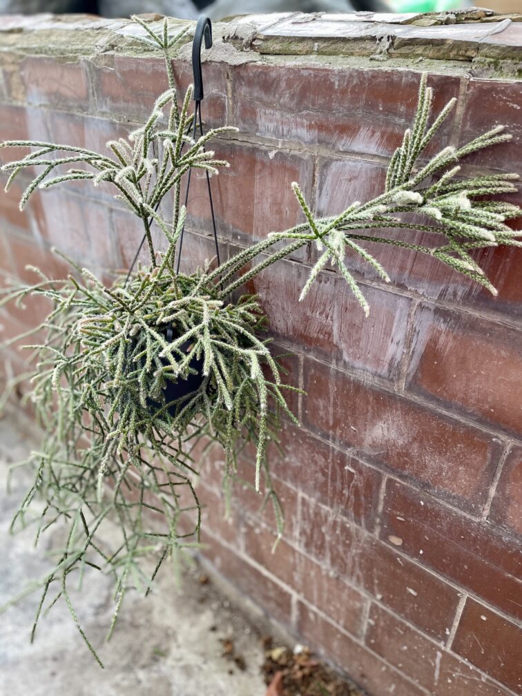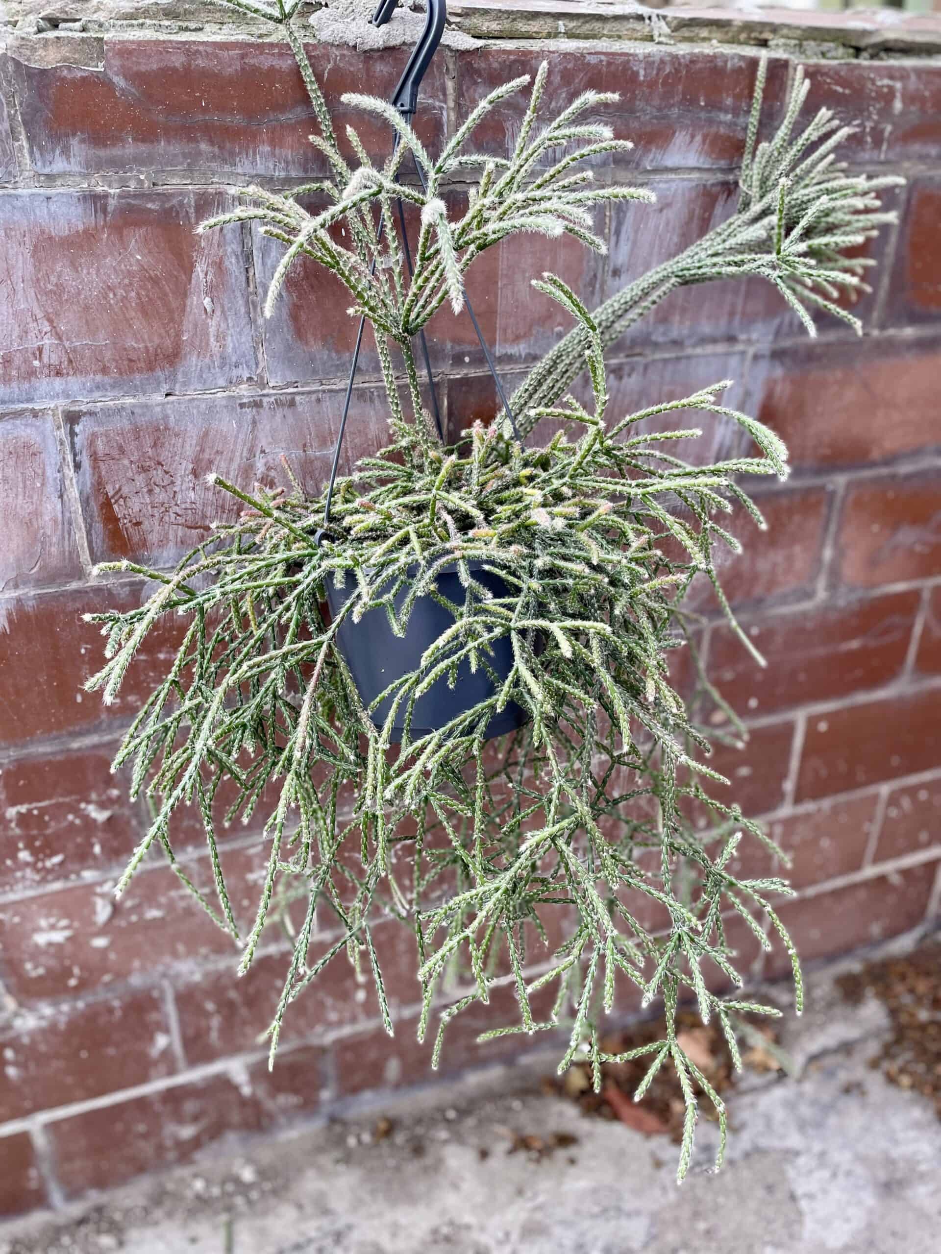 Rhipsalis pilocarpa to kaktus dżunglowy o długich ciemnozielonych pędach z białymi włoskami. Wraz ze wzrostem staje się rośliną zwisającą, więc nadaje się również do makramy lub wiszącej doniczki.
