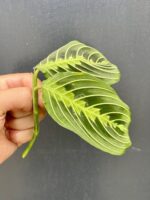 Sadzonka kolekcjonerskiej Maranty Lemon Lime. To niezwykła odmiana maranty, która przyprawi o szybsze bicie serca niejednego kolekcjonera. Jej cechą charakterystyczną są neonowo-limonkowe liście, przyozdobione jasnymi, kontrastującymi nerwami. Sadzonkę polecamy ukorzeniać w wodzie z dodatkiem węgla aktywowanego. Jeśli chcesz dowiedzieć się trochę o pielęgnacji już rosnącej rośliny, polecamy nasz wpis o Marancie Lemon Lime.