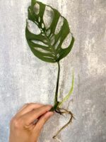 Widoczna na zdjęciu roślina: Sadzonka Monstera laniata ma wysokość około 1 cm. Jej doniczka ma 1 cm średnicy oraz 1 cm wysokości.