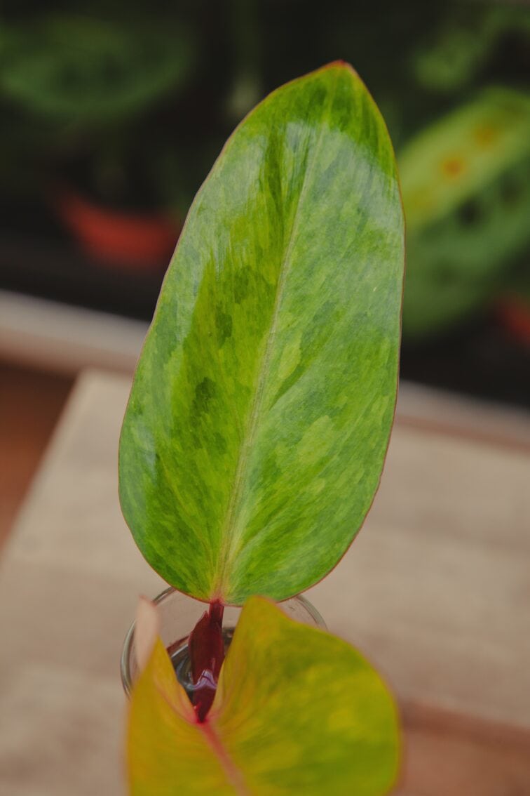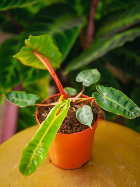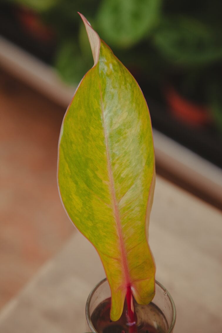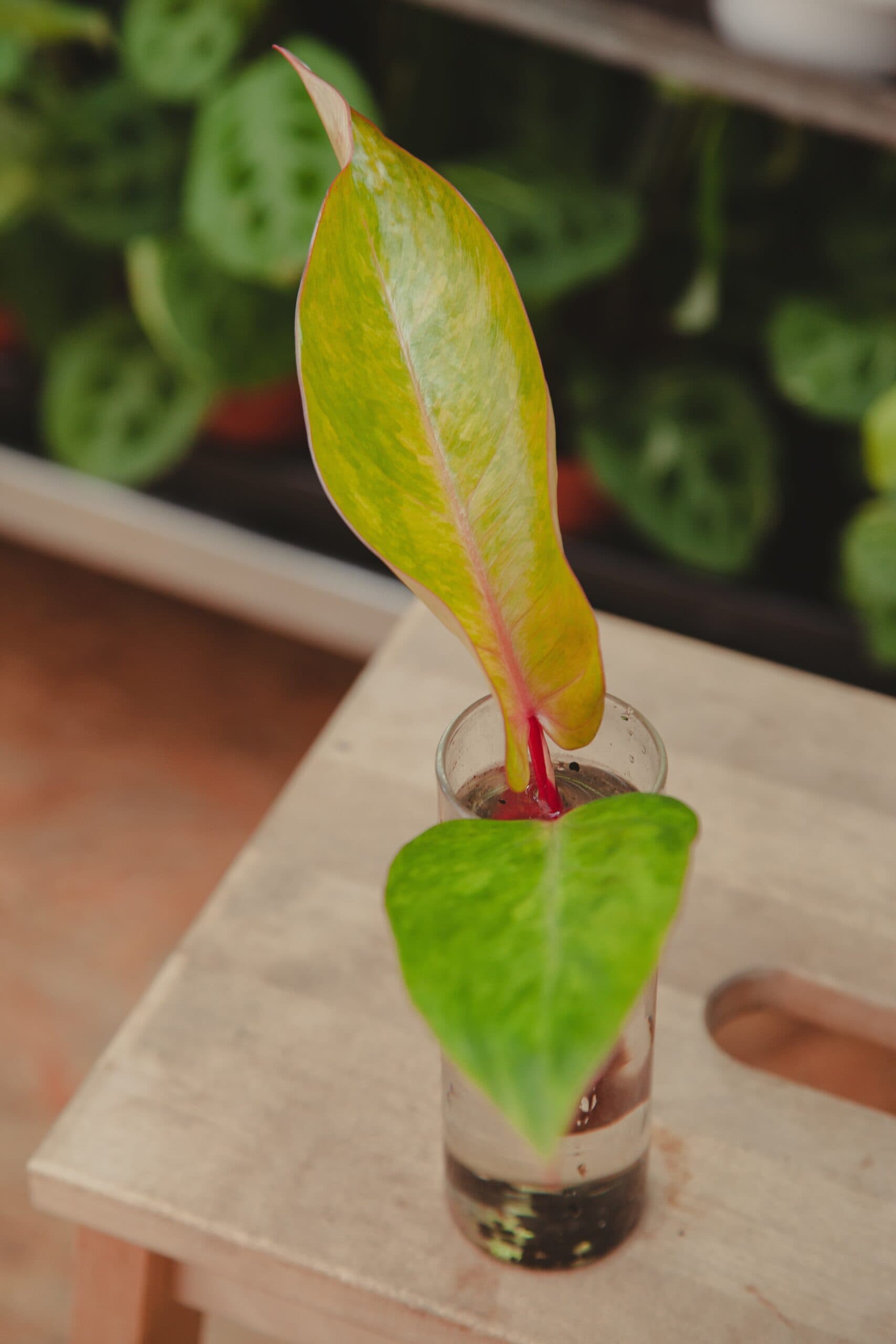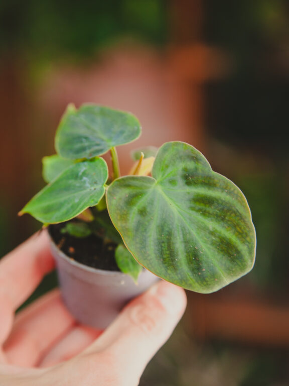 Widoczna na zdjęciu roślina: Sadzonka Philodendron Painted Lady 2 ma wysokość około 30 cm. Jej doniczka ma 1 cm średnicy oraz 1 cm wysokości.