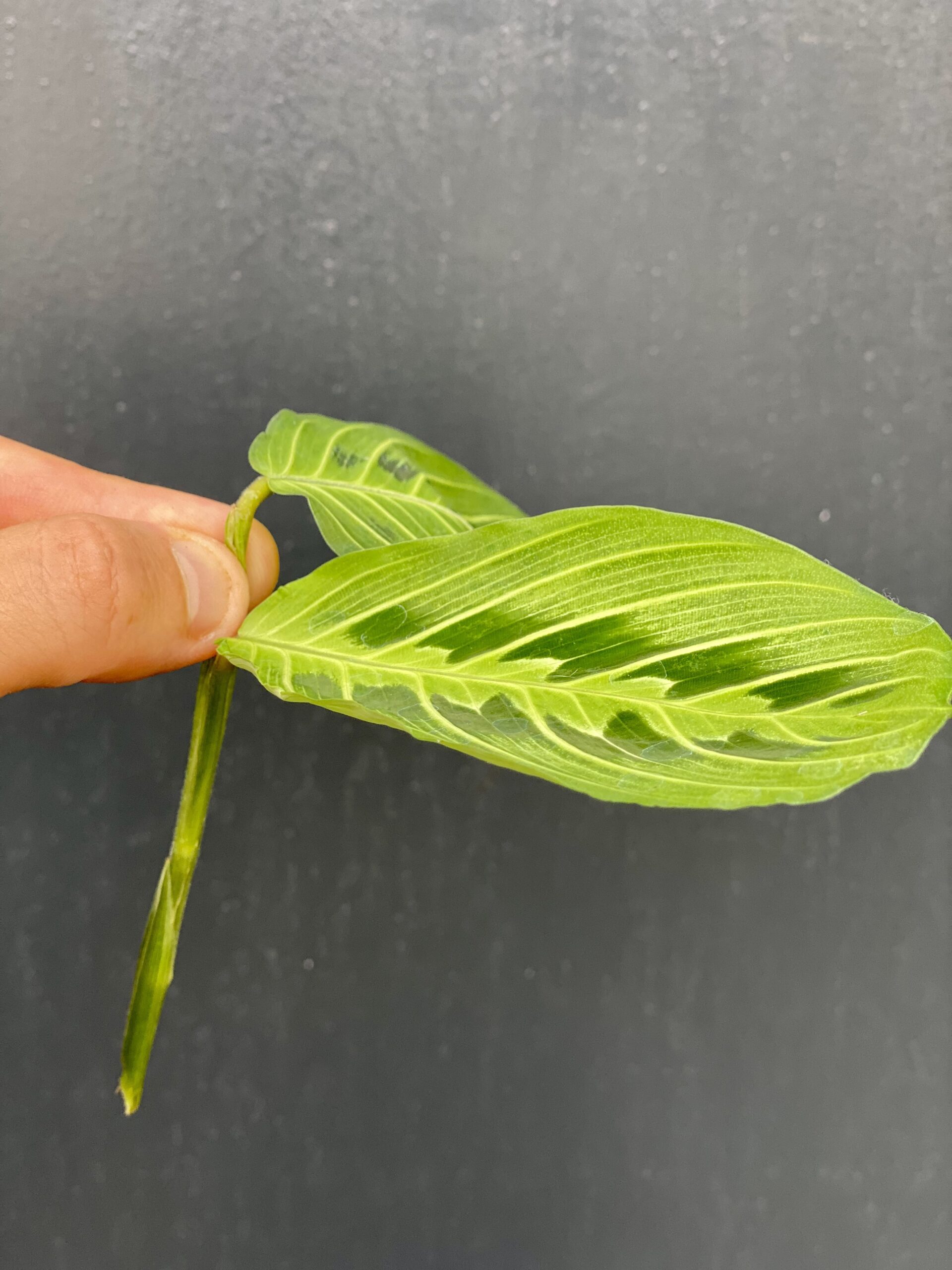 Sadzonka szczytowa cięta nieukorzeniona Maranty Lemon Lime. To niezwykła odmiana maranty, która przyprawi o szybsze bicie serca niejednego kolekcjonera. Jej cechą charakterystyczną są neonowo-limonkowe liście, przyozdobione jasnymi, kontrastującymi nerwami. Sadzonkę polecamy ukorzeniać w wodzie z dodatkiem węgla aktywowanego. Jeśli chcesz dowiedzieć się trochę o pielęgnacji już rosnącej rośliny, polecamy nasz wpis o Marancie Lemon Lime.