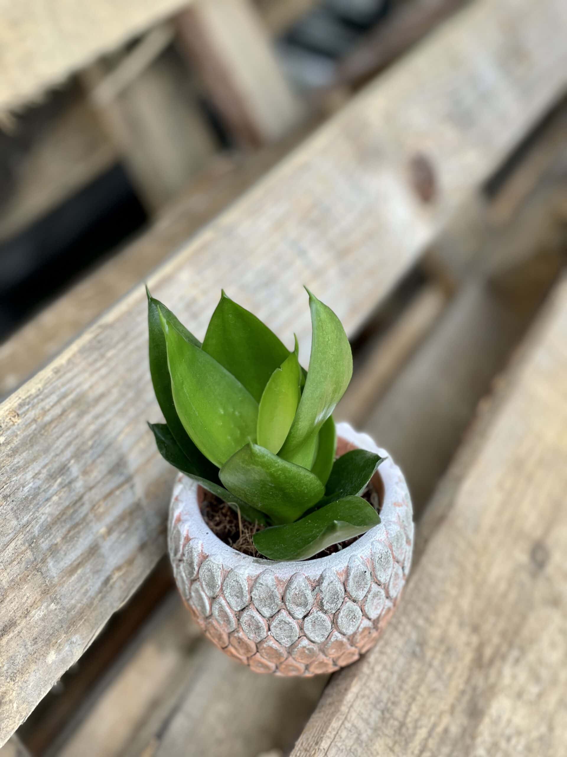 Miniaturowa wersja pięknej odmiany sansevierii alias wężownicy. Roślina ponadczasowa, a przy tym wybaczająca zaniedbanie i bardzo elastyczna. Świetnie radzi sobie w zróżnicowanych warunkach świetlnych i temperaturach.