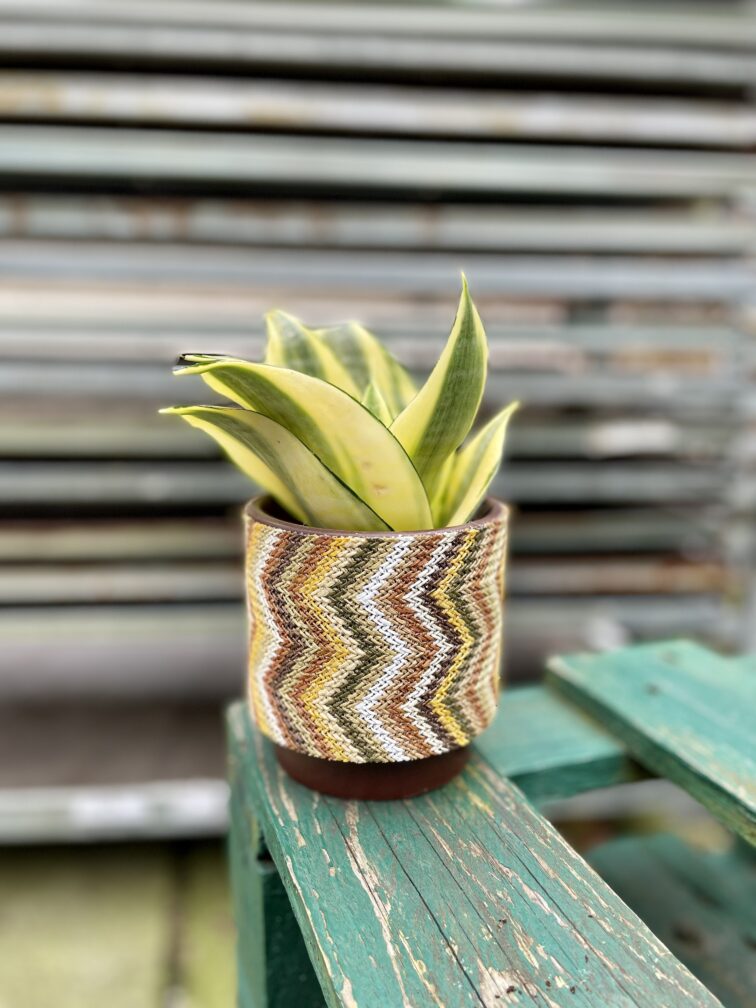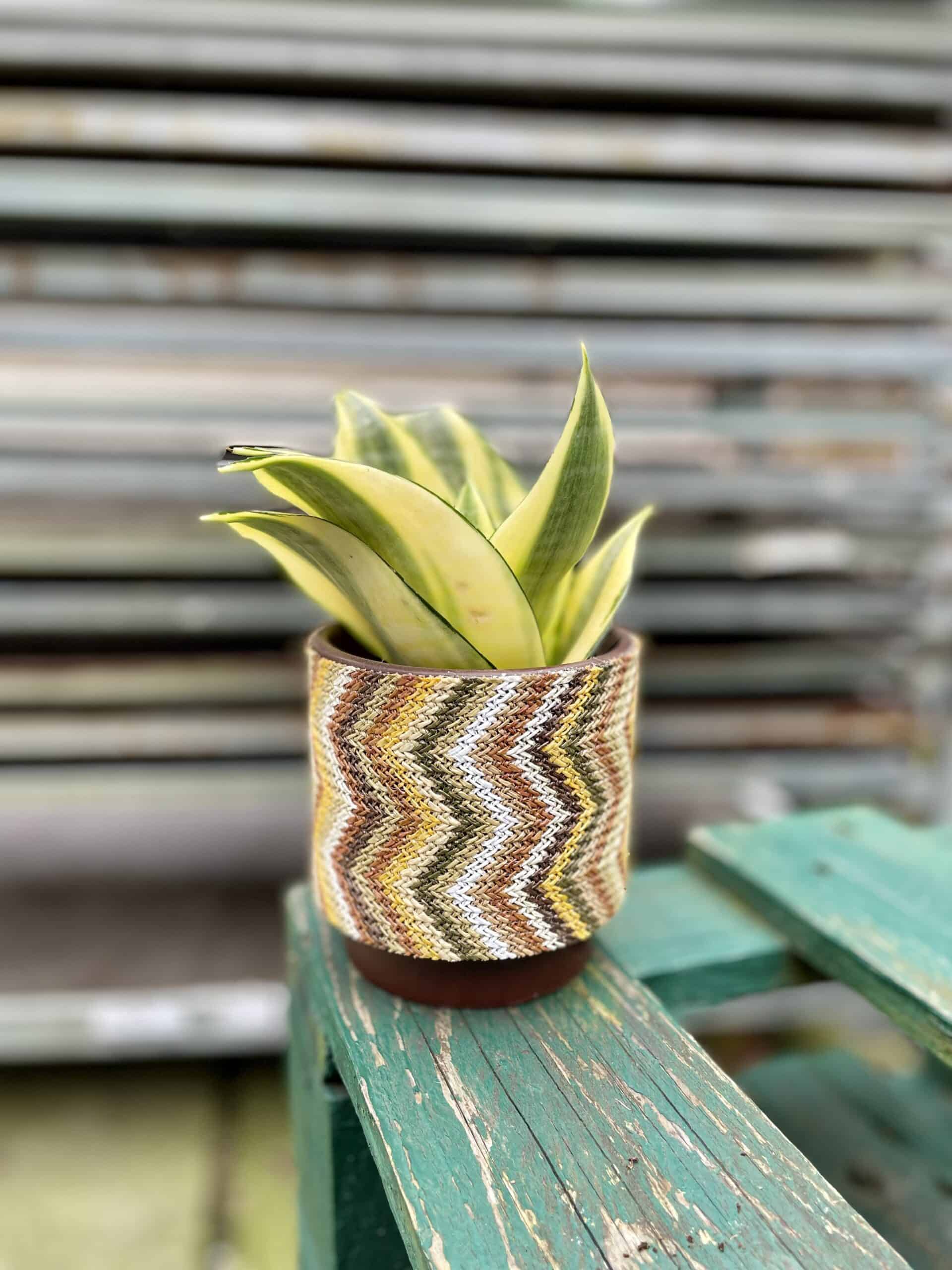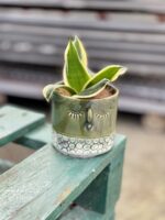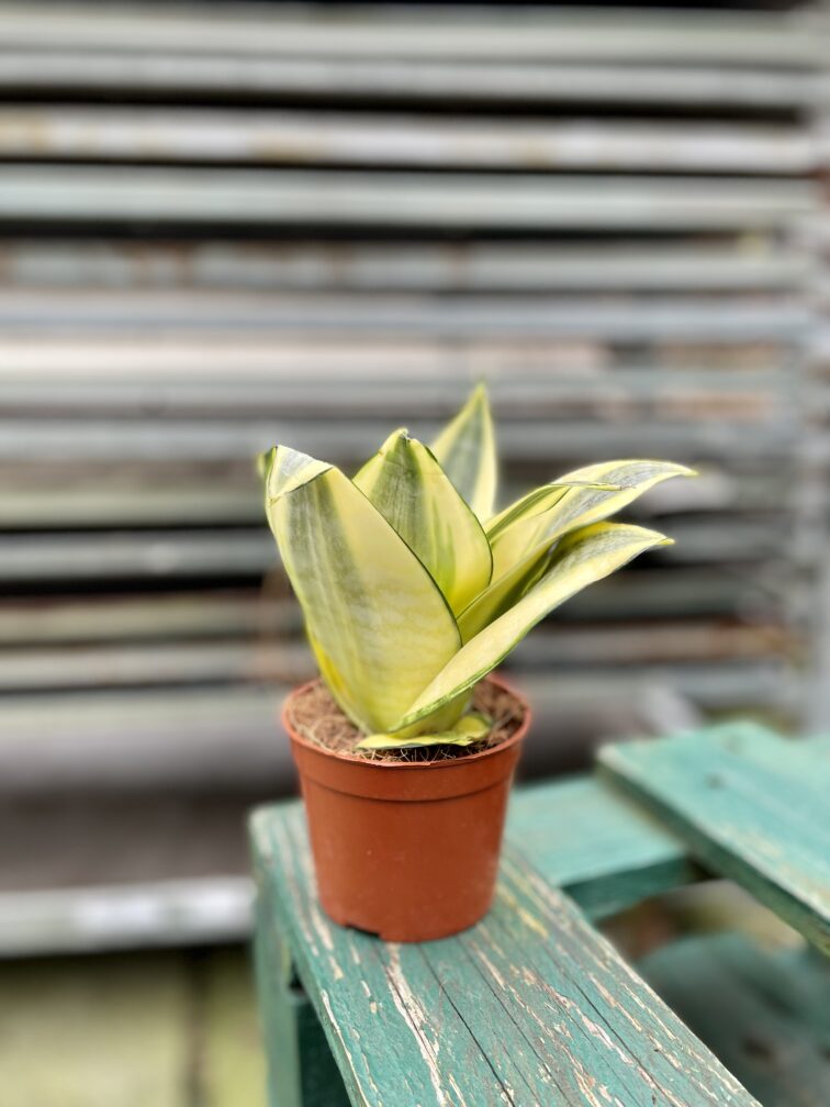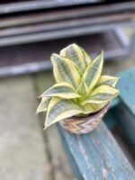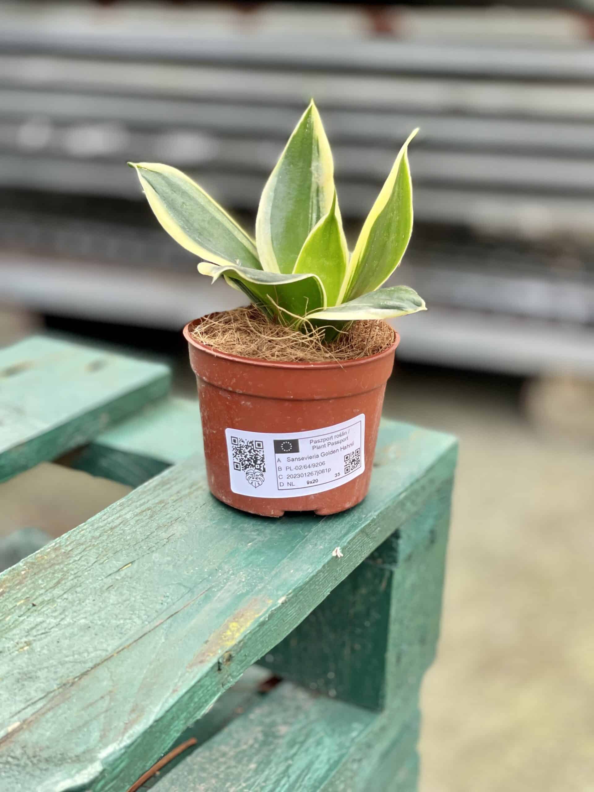 Sansevieria Golden Hahnii to wyjątkowo oryginalna odmiana Sansevierii Gwinejskiej o rozetowej formie i liściach ozdobionych złocistymi marginesami.