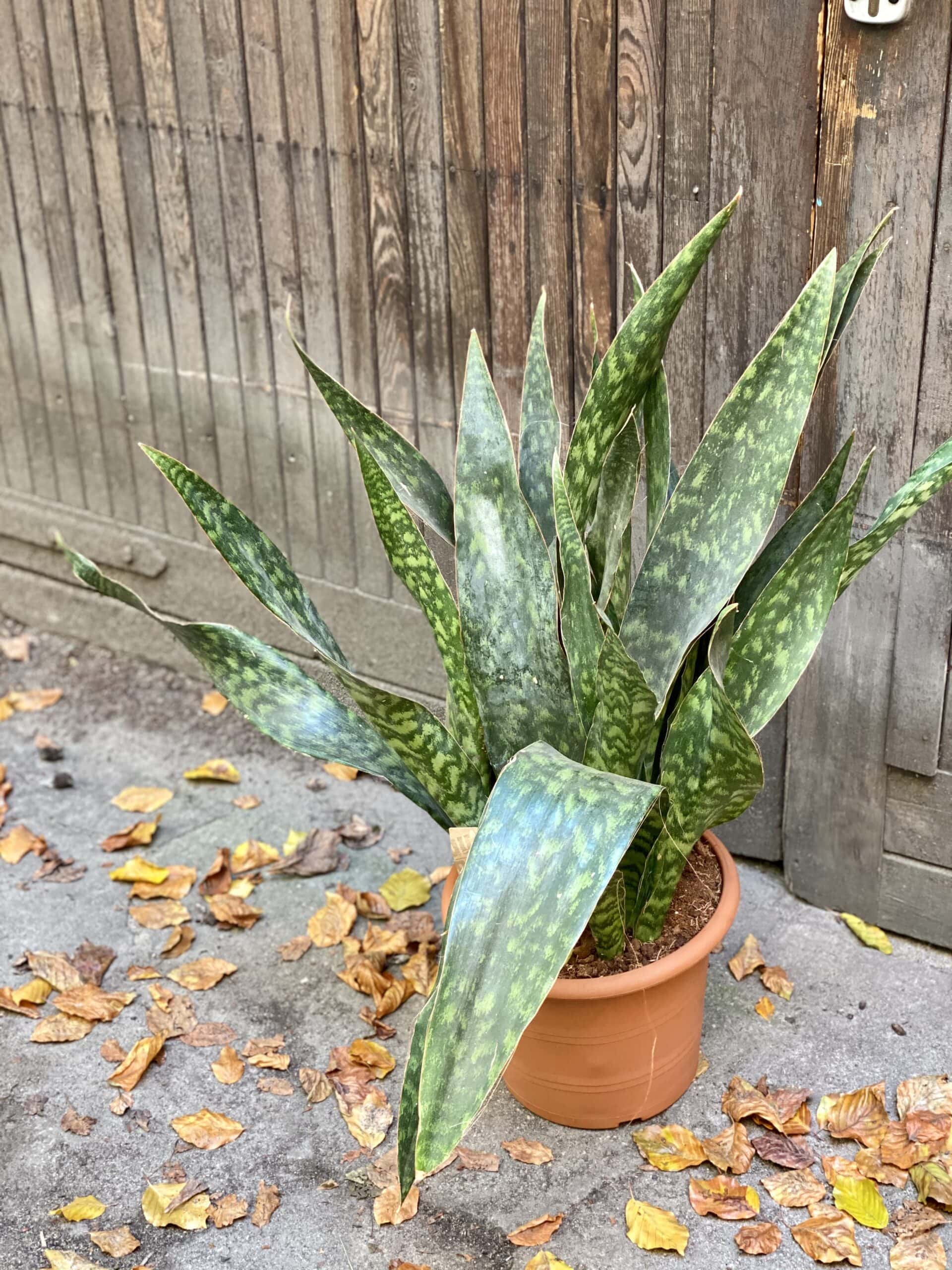 Sansevieria Jiboia to trudno dostępna sansewieria o podłużnych, zielonych liściach nakrapianych jaśniejszymi plamkami. Będzie wspaniałą ozdobą zarówno nowoczesnego wnętrza, jak i tego w klimacie boho. A co najlepsze – ta roślina doniczkowa jest jedną z tych roślin, które najlepiej oczyszczają powietrze w naszych domach.