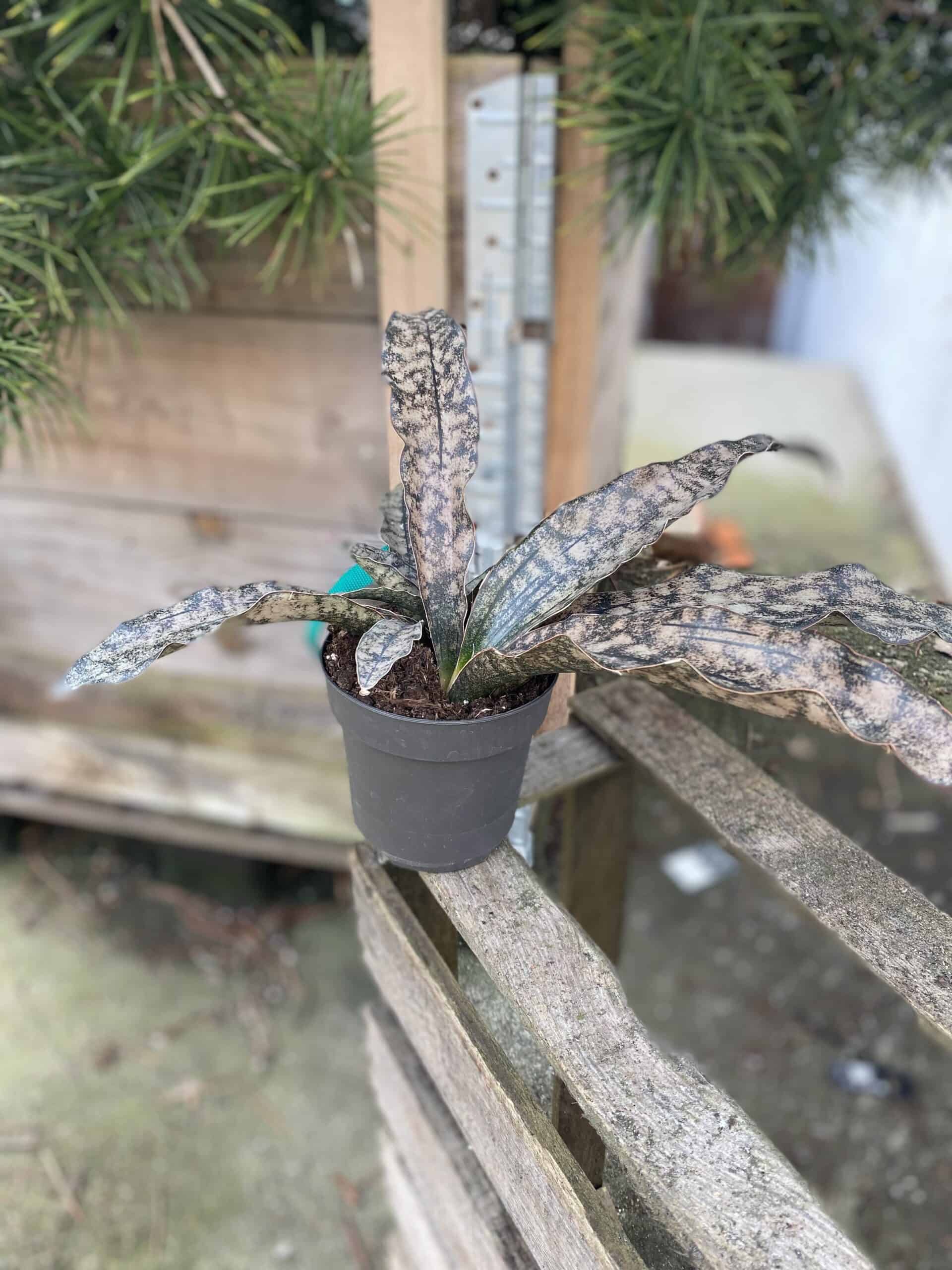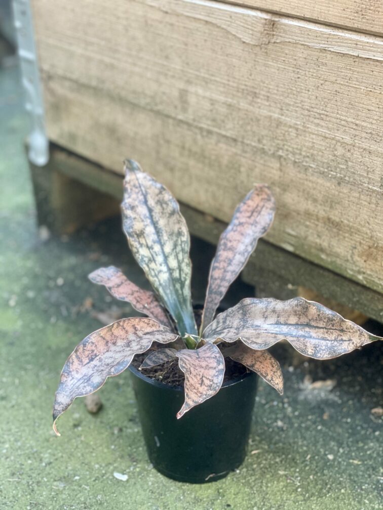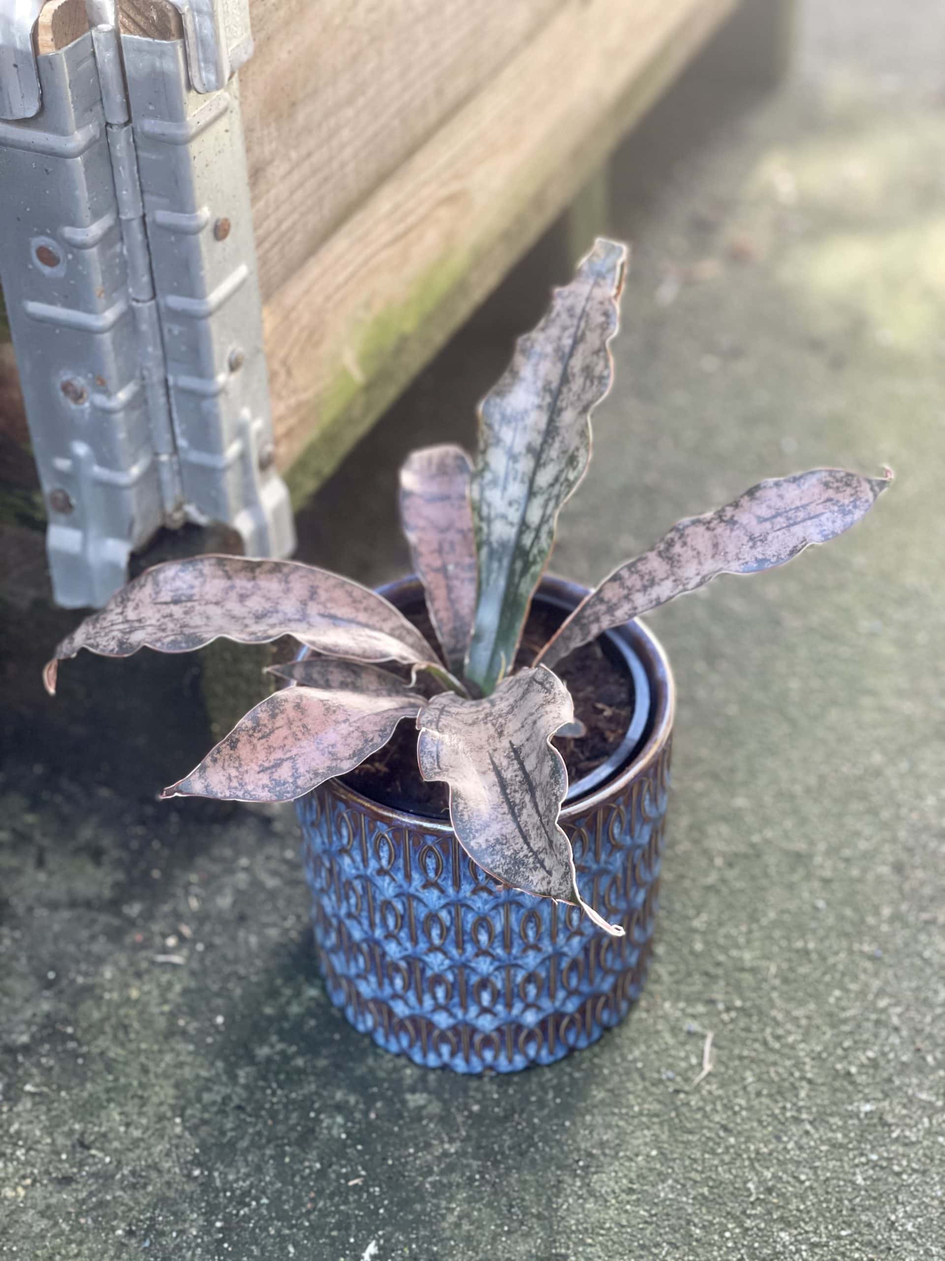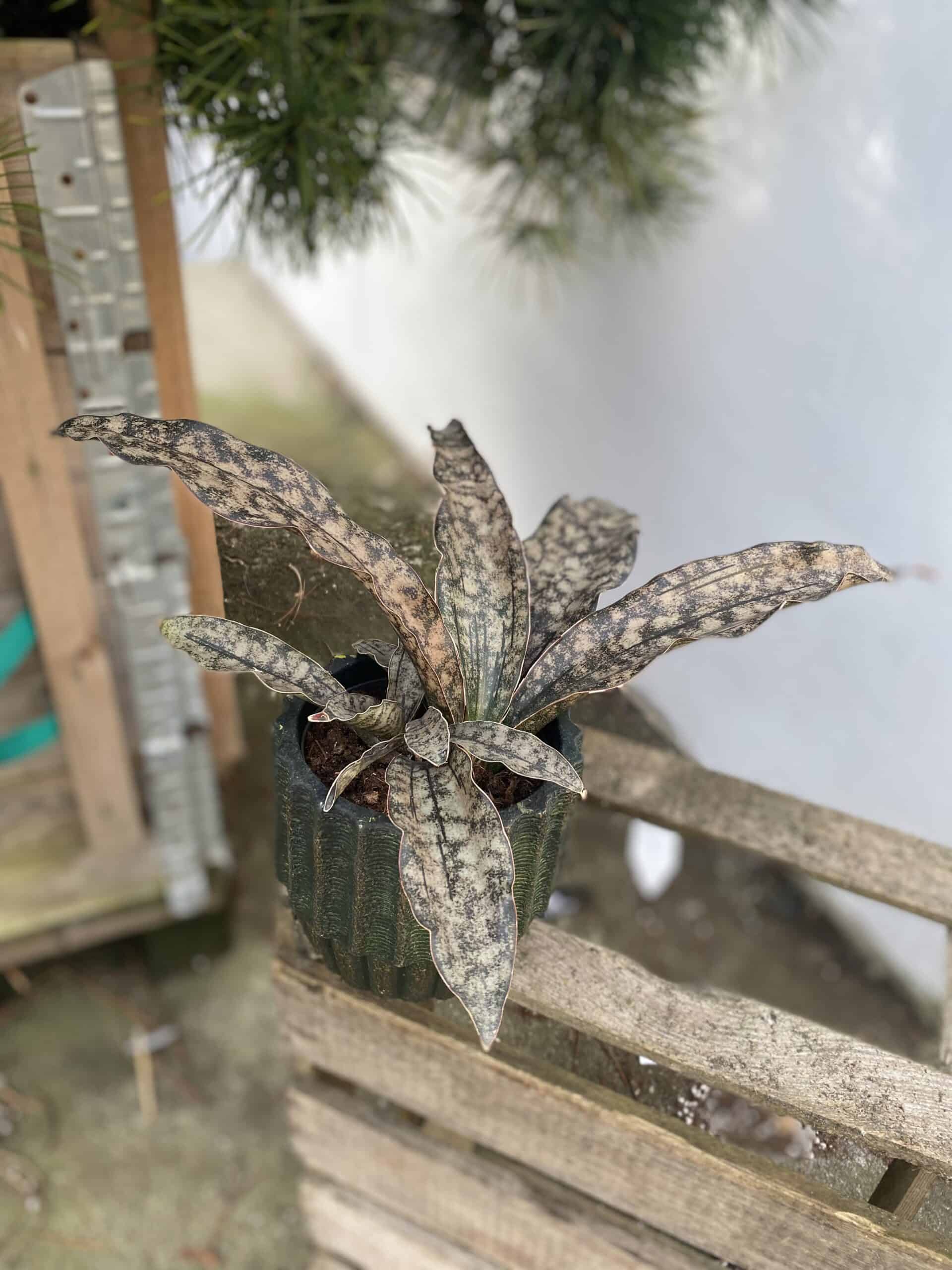 Sansevieria kirkii Coppertone to bardzo rzadka sansevieria o unikalnym, przykuwającym wzrok ubarwieniu i ornamentyce liści. Będzie wspaniałym kontrastem dla zielonych roślin z Twojej kolekcji.