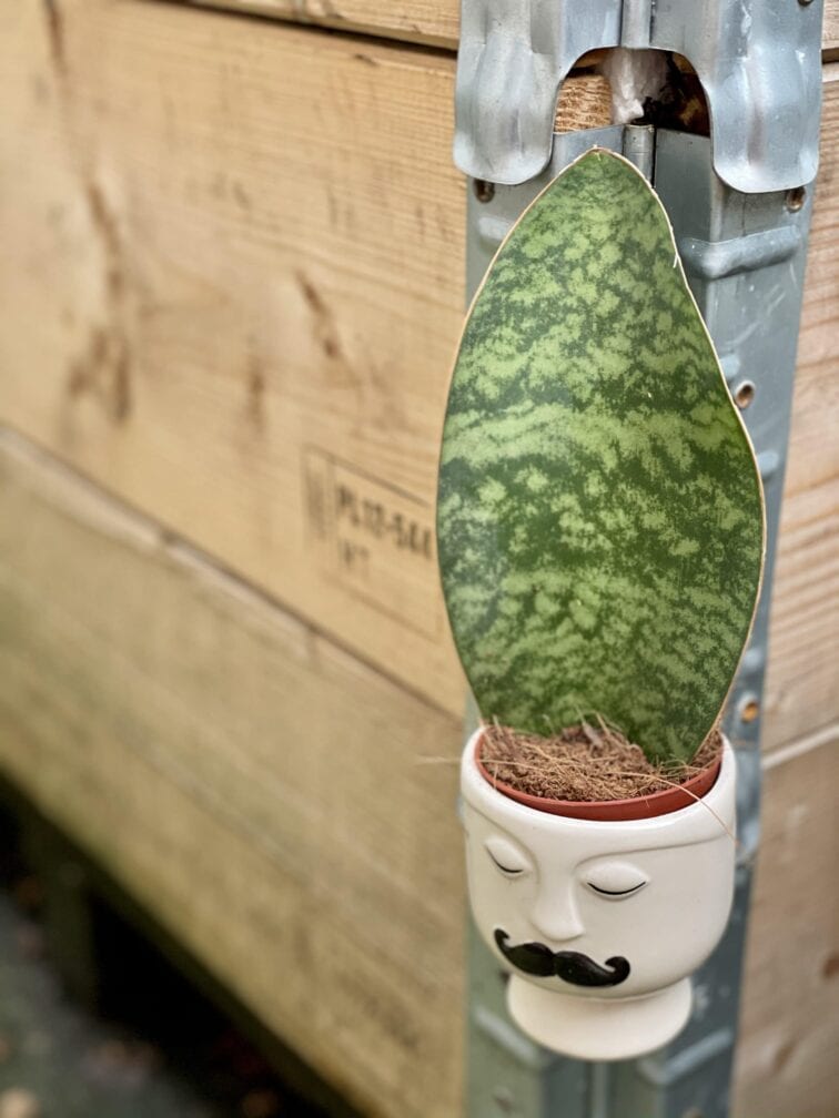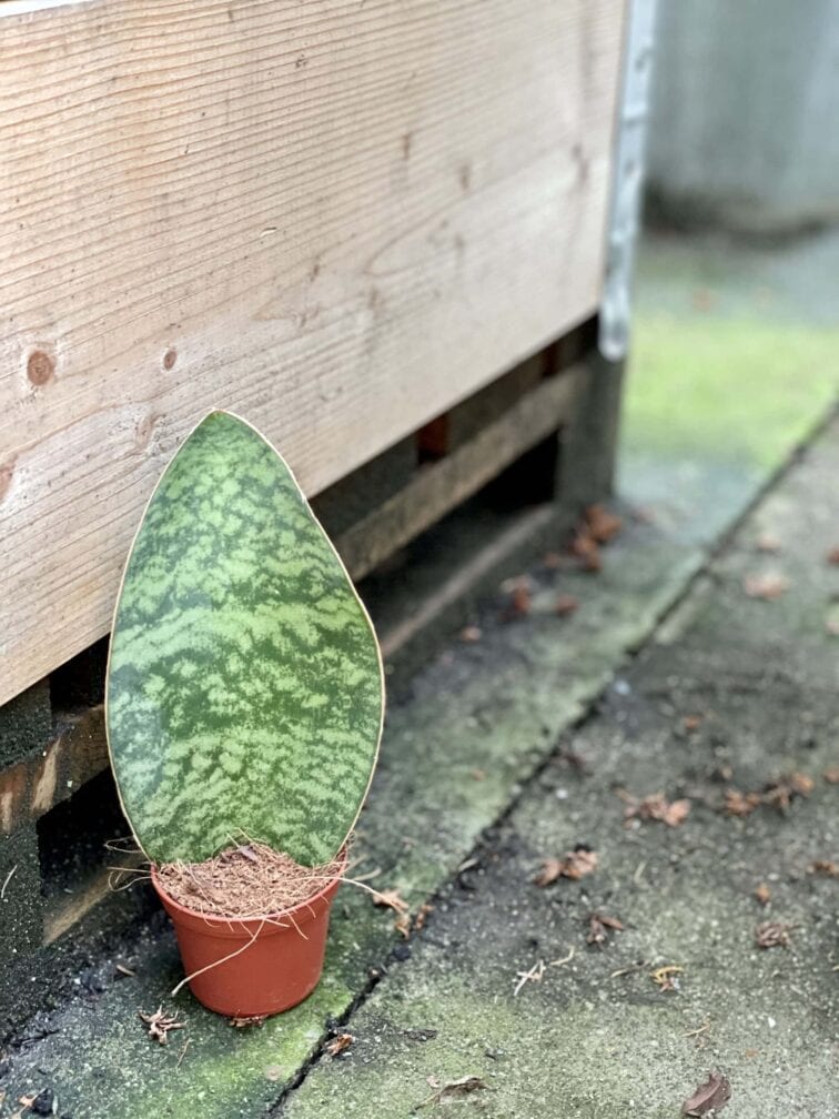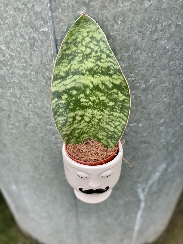 Sansevieria Masoniana to dość rzadko spotykana odmiana Sansevierii o wyjątkowo szerokich, mięsistych liściach z ciekawym, egzotycznym wzorem i brązowozłotą obwódką. Tak jak jej kuzynki rośnie wolno, jest bardzo wytrzymała i ma wyjątkowe uzdolnienia w zakresie oczyszczania powietrza w naszych mieszkaniach.