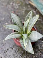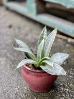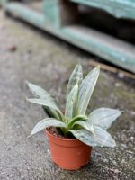 Sansevieria Silver Frost Hahnii to piękna odmiana wężownicy o kremowo-srebrzystych liściach i zwartym, kompaktowym pokroju. Liście tej sansewierii są spiczaście zakończone i z zielonym marginesem. To idealny wybór dla tych, którzy “nie mają już miejsca” w swojej domowej dżungli lub szukają rośliny o niewielkich wymaganiach. Sansewieria Silver Frost Hahnii wymaga jedynie oszczędnego podlewania i dobrze przepuszczalnego podłoża. Radzi sobie na różnych stanowiskach i w niskiej wilgotności powietrza.