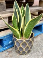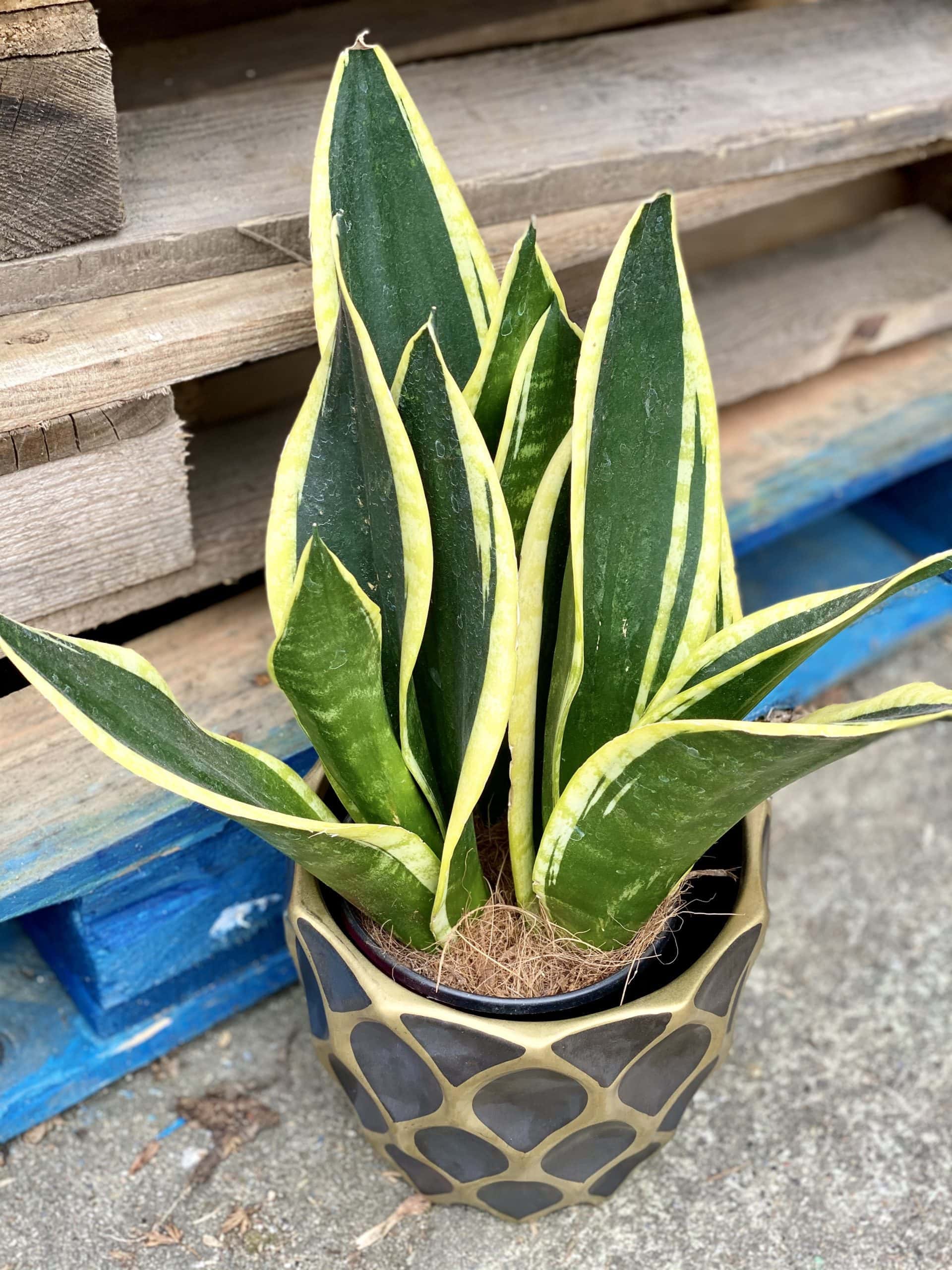 Sansevieria trifasciata Black Gold to elegancka sansewieria o wyrazistych, złotych marginesach, otaczających mięsiste liście w kolorze głębokiej zieleni. Ze względu na jej właściwości oczyszczające powietrze, będzie idealnym wyborem do sypialni.