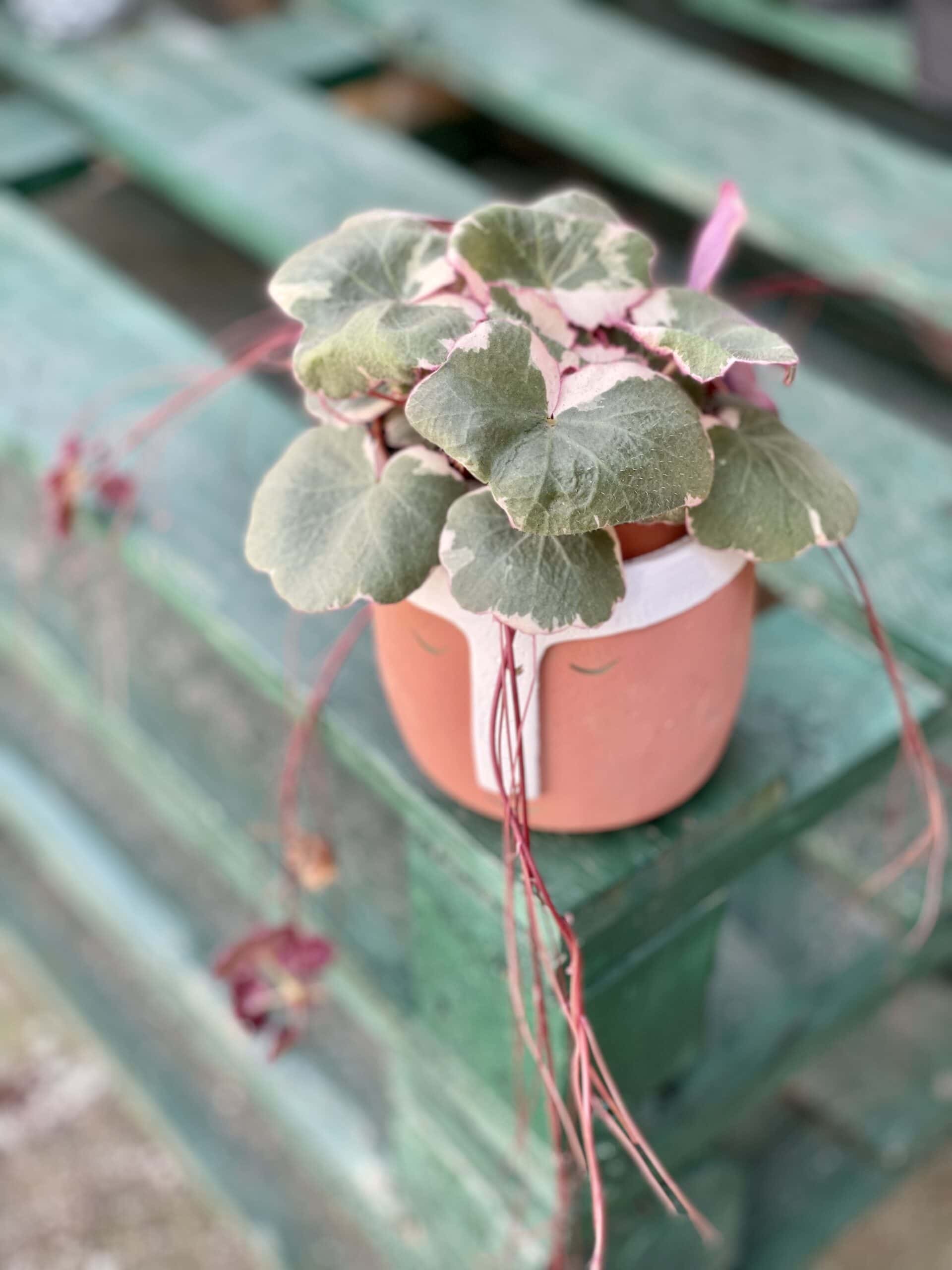 Saxifraga, lub też skalnica rozłogowa, tworzy mocną, gęstą i zwartą kępę. Rośnie bezproblemowo i jest prosta w pielęgnacji. Jej listki od spodu bordowe, na zewnątrz są zielone i obwiedzione jasnymi marginesami. Rozłogi to inaczej płożące się nad powierzchnią ziemi pędy, które służą roślinie do rozmnażania.