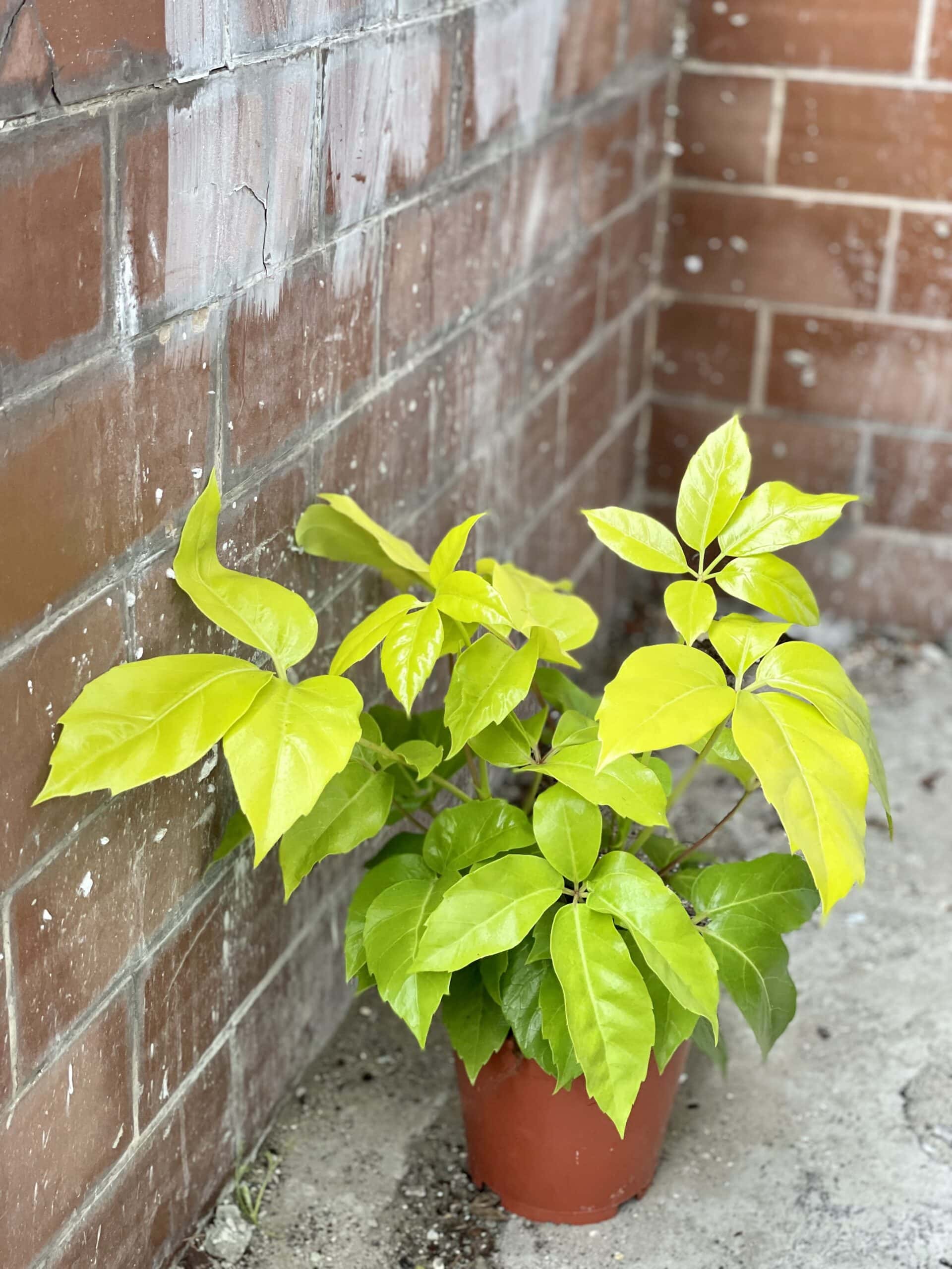 Schefflera actinophylla Golden Amate to kuzynka klasycznej szeflery parasalowatej Amate, czyli przedstawicielki o naprawdę sporych liściach, jak na roślinę z rodzaju Schefflera. Liście Golden Amate są równie duże i zjawiskowo błyszczące, a do tego w energetyzującym, limonkowym kolorze!