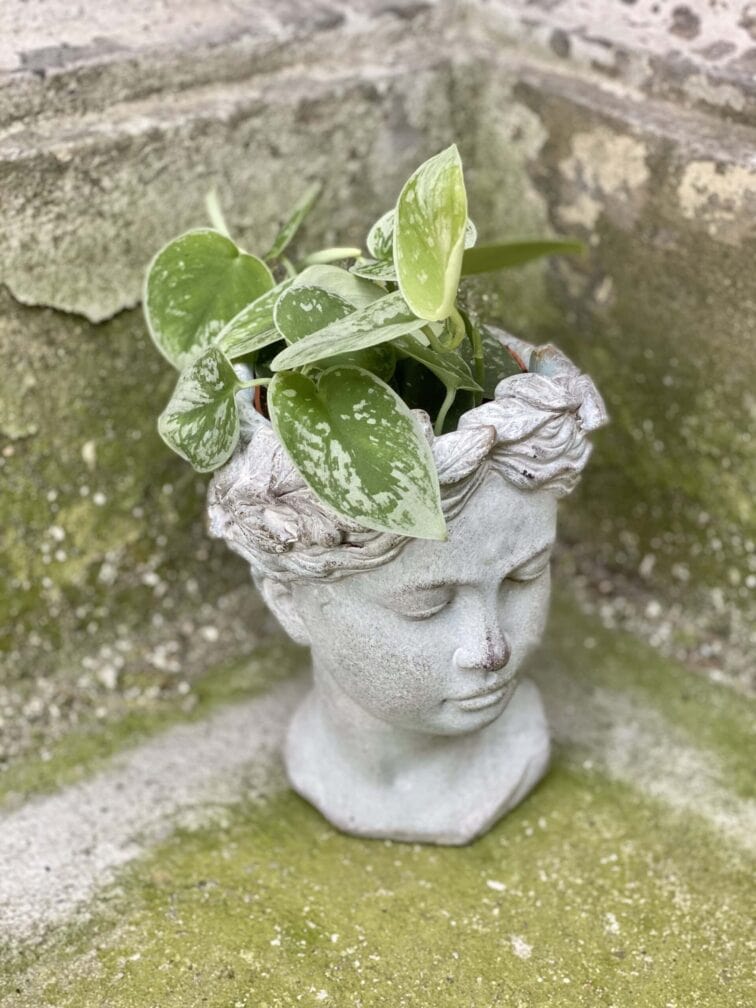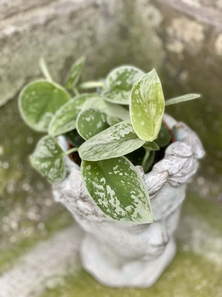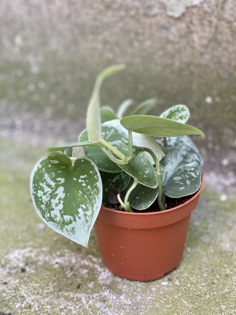 Urokliwe pnącze o sercowatych liściach pokrytych srebrzystymi, nieregularnymi plamkami. Jest niekłopotliwe w pielęgnacji, rośnie intensywnie i wspaniale wygląda rozpuszczając swoje długie, ozdobne pędy z makramy lub wysokiej półki. Bardzo ciekawy efekt aranżacyjny uzyskacie ustawiając go obok innych pnącz, jak choćby philodenron scandens, golden pothos czy scindapsus trebie.