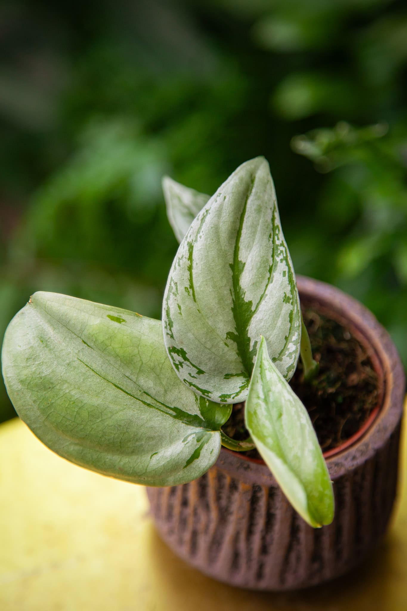 Ten scindapsus zachwyca kolorami, które pięknie współgrają na blaszce liściowej. Kompozycja ciemnej zieleni na nerwie głównym, seledynowych i białych tonacji przenikających się wzajemnie, powoduje że nie można oderwać wzroku od tej subtelnej i nastrojowej rośliny. Jest ona w dodatku dość prosta w uprawie, a z czasem może tworzyć długie i gęste girlandy. Idealna na wysokich przestrzeniach.