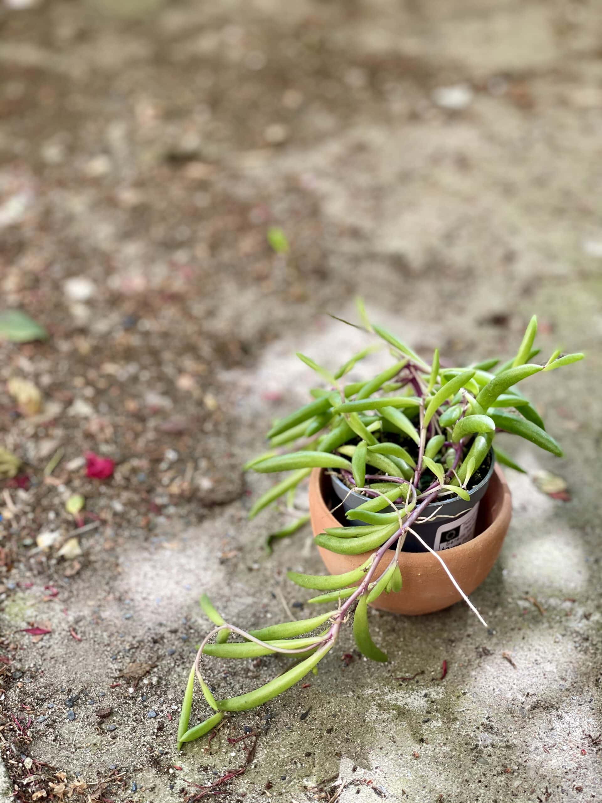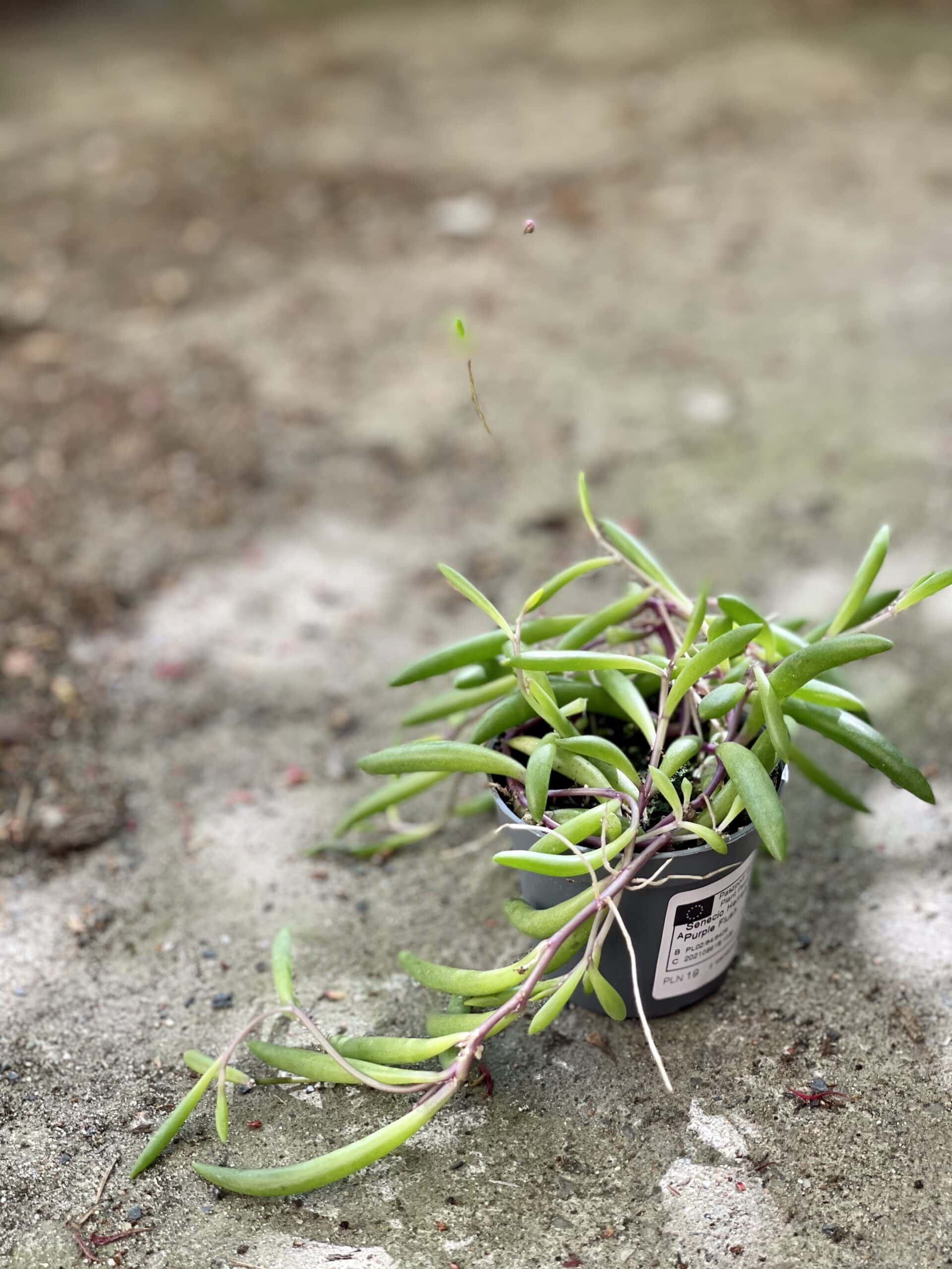 Senecio herreianus Purple Flush to rzadziej spotykany w naszych domach sukulent o pięknym wybarwieniu, które intensyfikuje się wraz z jej wzrostem i ilością światła słonecznego. Choć dzieli wiele wspólnego z rodziną Senecio, tak naprawdę jej prawidłowa choć rzadko stosowana nazwa to Othonna Capensis – Otonna Przylądkowa