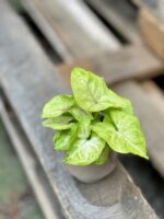 Widoczna na zdjęciu roślina: Syngonium Mango Allusion ma wysokość około 10 cm. Jej doniczka ma 6 cm średnicy oraz 5 cm wysokości.