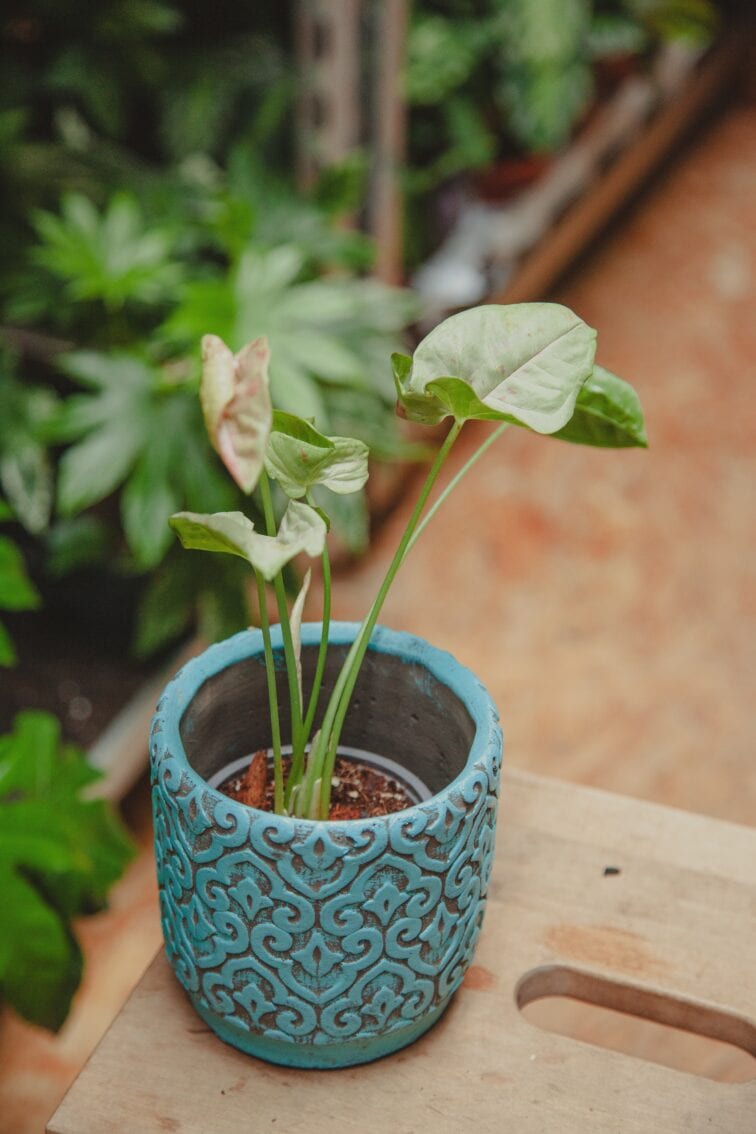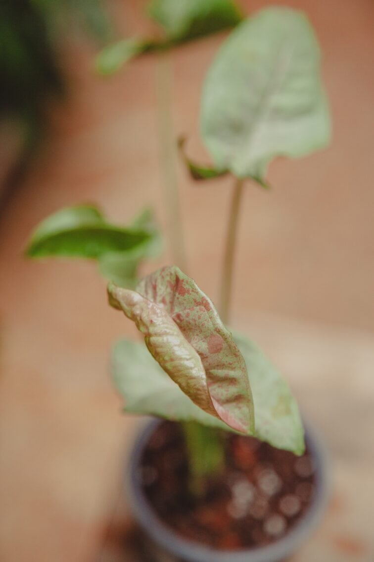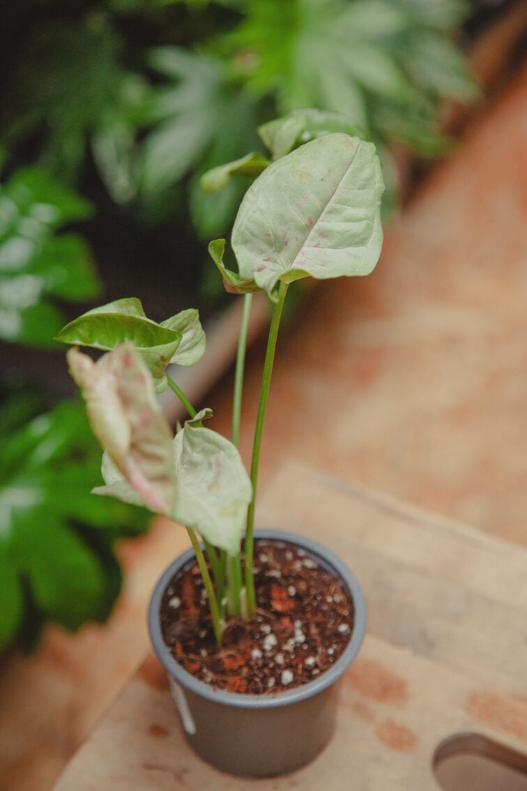 Temperatura: Syngonium lubi ciepło i dużą wilgotność powietrza. Przeciętne, ciepłe temperatury panujące w naszych mieszkaniach służą mu. Wyzwaniem jest zapewnienie mu odpowiedniej wilgotności powietrza. Zobacz jak to zrobić w naszym wpisie o wilgotności. Pielęgnacja: Syngonium podlewamy dopiero, gdy górna warstwa podłoża przeschnie. Uważamy na przelanie, od którego mogą zgnić roślinie korzenie. W okresie wegetacyjnym zroślichę zasilamy nawozem dla roślin doniczkowych. Najlepiej rośnie w podłożu lekkim, przepuszczalnym z dodatkiem perlitu, chipsów kokosowych lub innych dodatków rozluźniających podłoże.