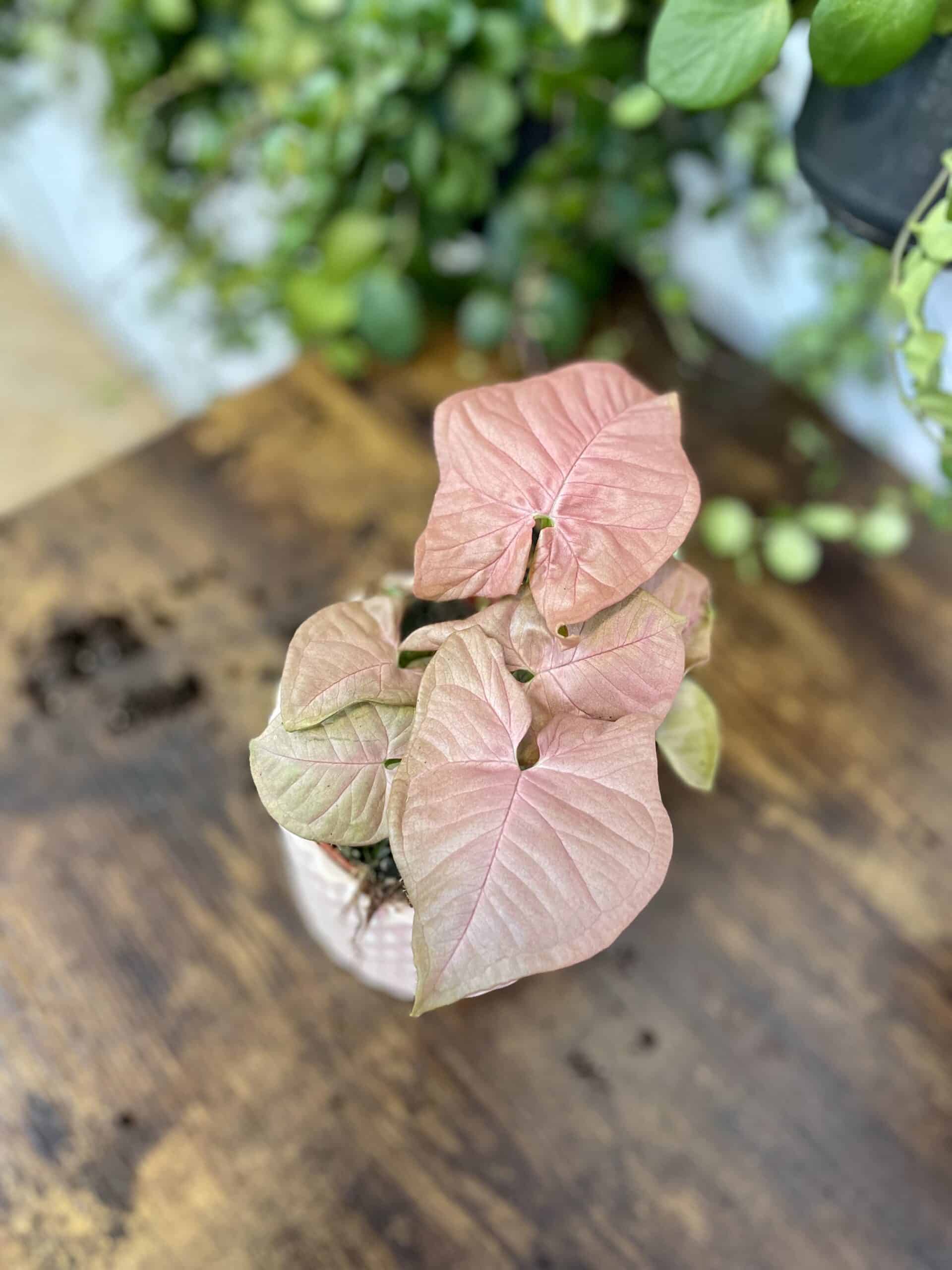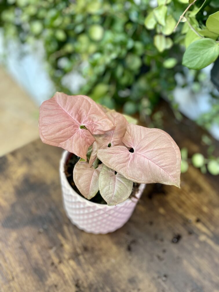 Syngonium to niekłopotliwe i efektowne pnącze. Jego ozdobą są strzałkowate liście, które w odmianie Neon Robusta zachwycają niespotykanym ubarwieniem. Przy odpowiedniej ilości światła nabierają bladoróżowej barwy o pięknym, perłowym połysku. Roślina doniczkowa idealna dla początkujących.